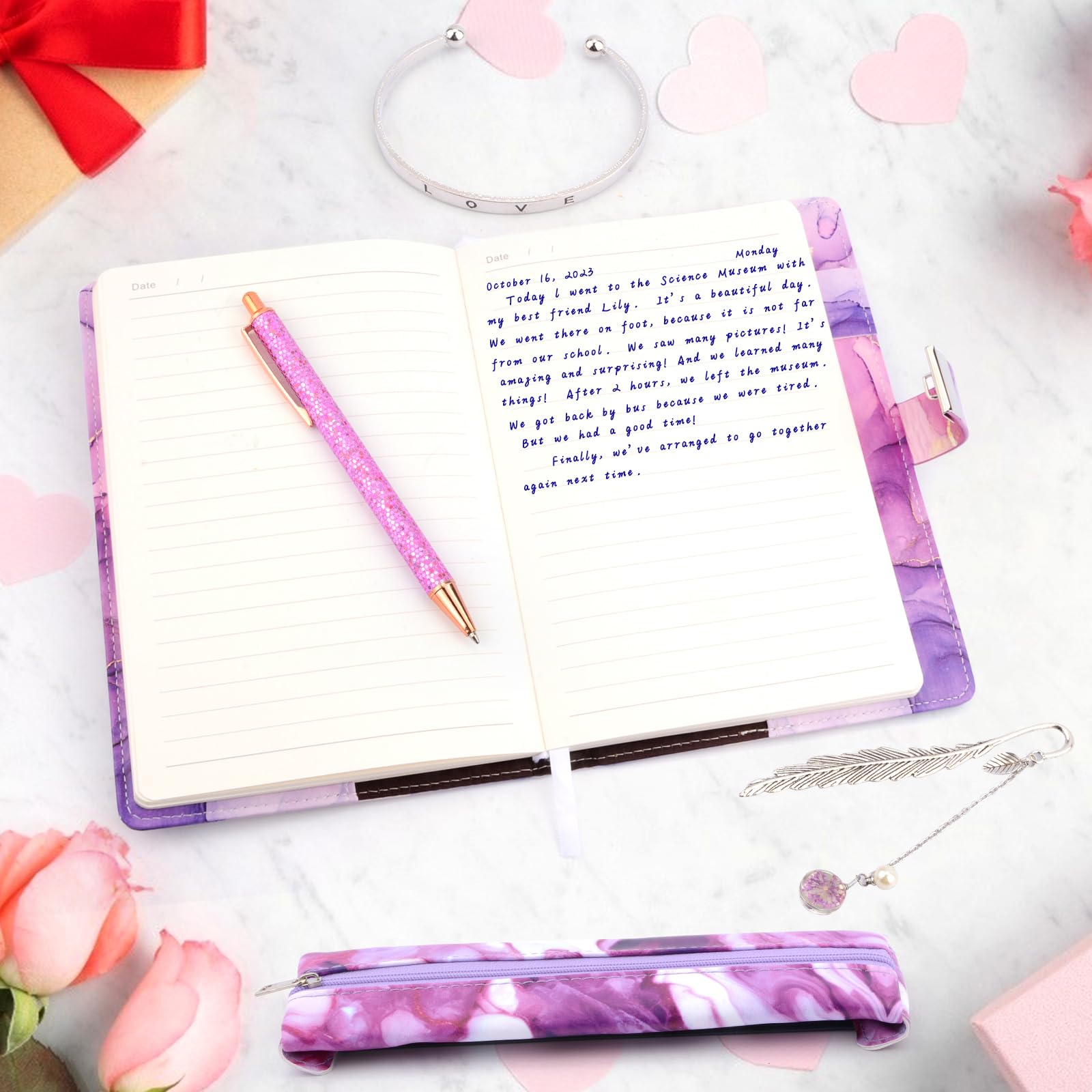 - 💜Größe und Material: Das 162-seitige Tagebuch hat die Größe A5 (8,47 x 5,71 Zoll). Wir haben hochwertiges Papier gewählt, um sicherzustellen, dass die Tinte nicht durchschlägt und Ihr Stift leicht über die Seiten gleiten kann. Das modische Marmormuster und der weiche, wasserdichte PU-Einband schützen das Tagebuch und sorgen dafür, dass es lange verwendet und aufbewahrt werden kann. Notizbuch kinder schulsachen mädchen schreibwaren set.