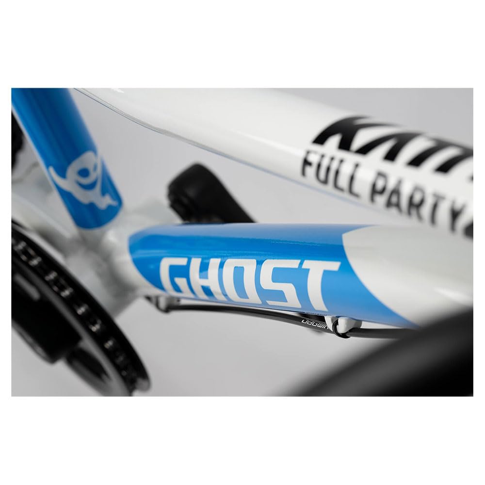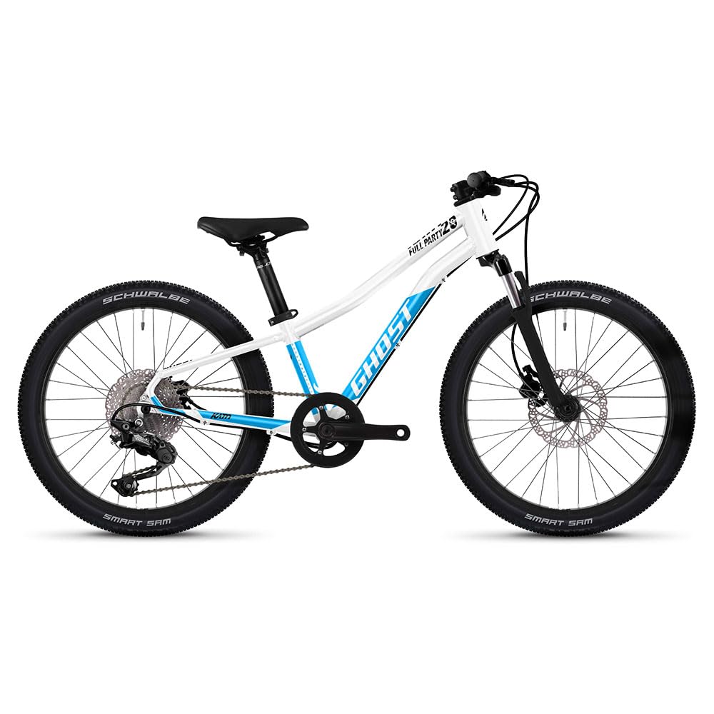 Einzelheiten: Ghost Kato 20 Full Party Mountainbike (20" | weiß / hellblau)Unsere schnellen, wendigen KATOs gibt es auch speziell für Jugendliche. Es sind Mountainbikes mit 24 und 20 Zoll, die richtig viel Spaß machen und den Nachwuchs garantiert auf den Bike-Geschmack bringen - wenn der nicht sowieso schon in die Wiege gelegt wurde... Die komplette Serie kommt mit robusten, genau auf Kinder abgestimmten und wartungsarmen Komponenten.Unsere Räder profitieren von mehr als 25 Jahren Erfahrung: Wir sind seit jeher detailverliebte Fahrradsüchtige. Deshalb entwickeln wir unsere Bikes ständig weiter und spielen mit innovativen Konzepten und neuen Designs an der Spitze mit. Überlegene Fahrwerkskonzepte wie unser RIOT-Link, preisgekröntes Design und unvergleichlicher Fahrspaß machen eines aus: Unsere Bikes sind unser Stolz.