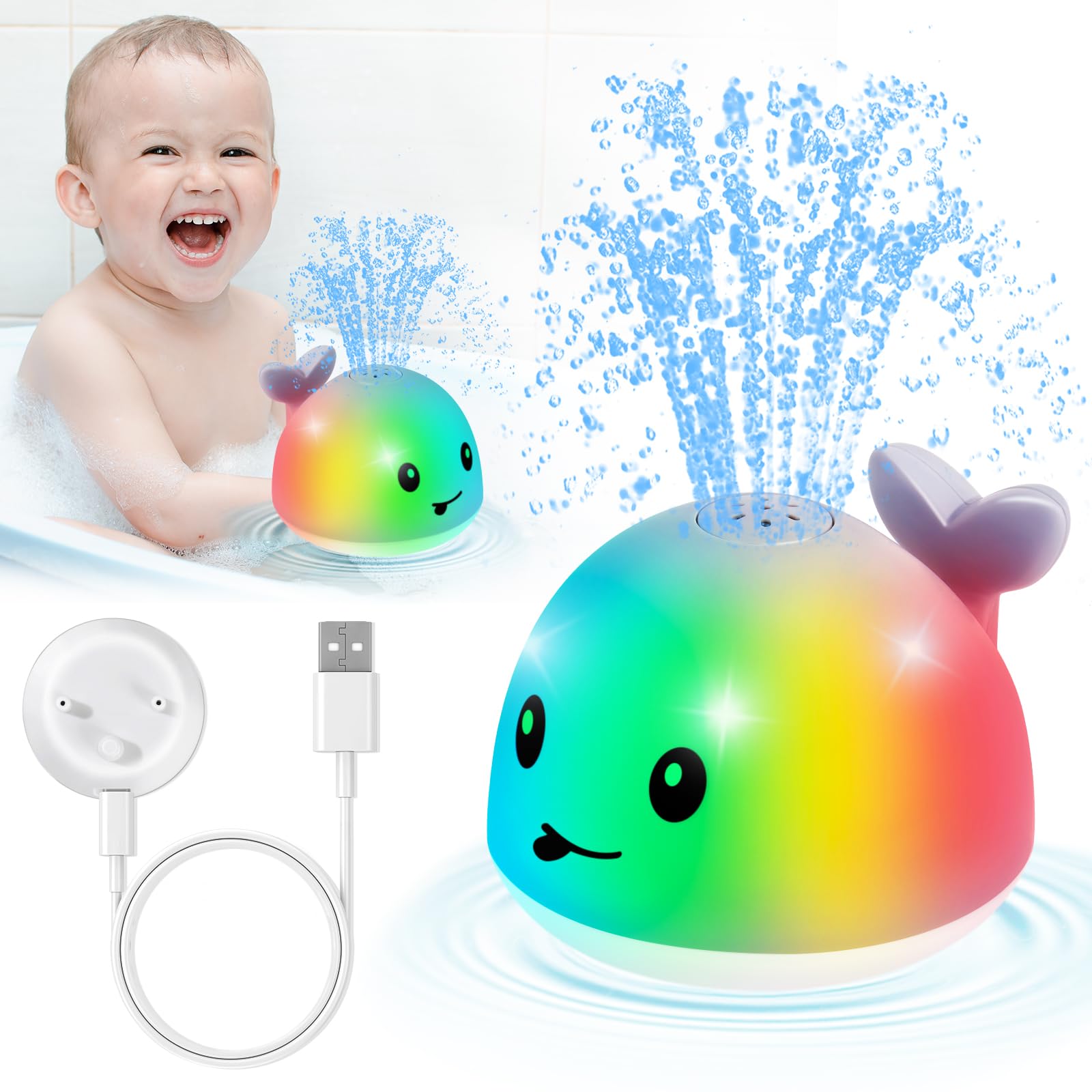 - 🛀【Baby Enjoy Bath Time】Cute Whale toddler bath toys mit bunten Lichtern und automatischem Induktionssprühwasser wird natürlich die Aufmerksamkeit Ihres Babys auf sich ziehen, wenn Sie das Badewannenspielzeug ins Wasser legen. Lassen Sie Ihr Baby sich in das Badespielzeug verlieben und genießen Sie jede Badezeit.