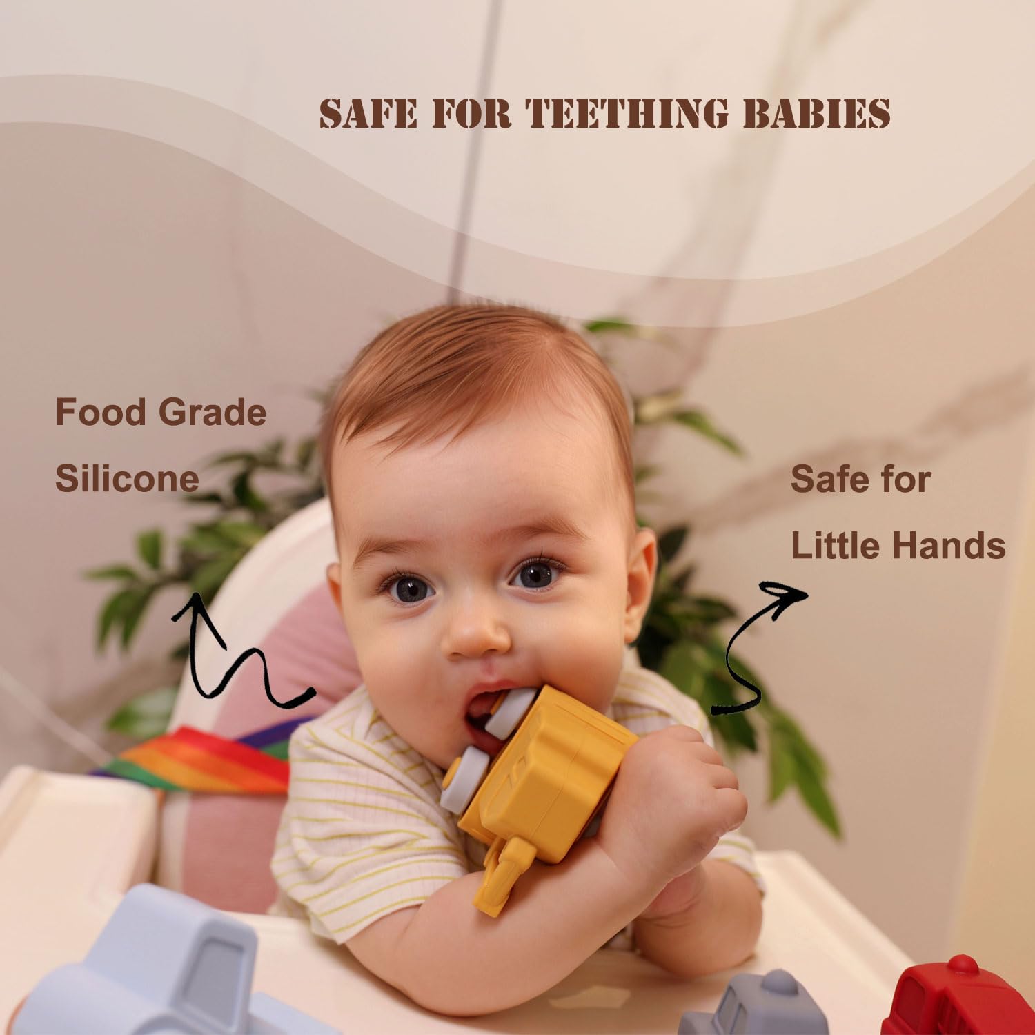 - Sicher für zahrende Babys – Weiches und kaubares Silikon beruhigt schmerzendes Zahnfleisch. Sogar die Räder sind mit lebensmittelechtem Silikon überzogen. Daher sind diese Auto-Beisspielzeuge sicher zum Kauen, Werfen oder Quetschen während des Spielens.