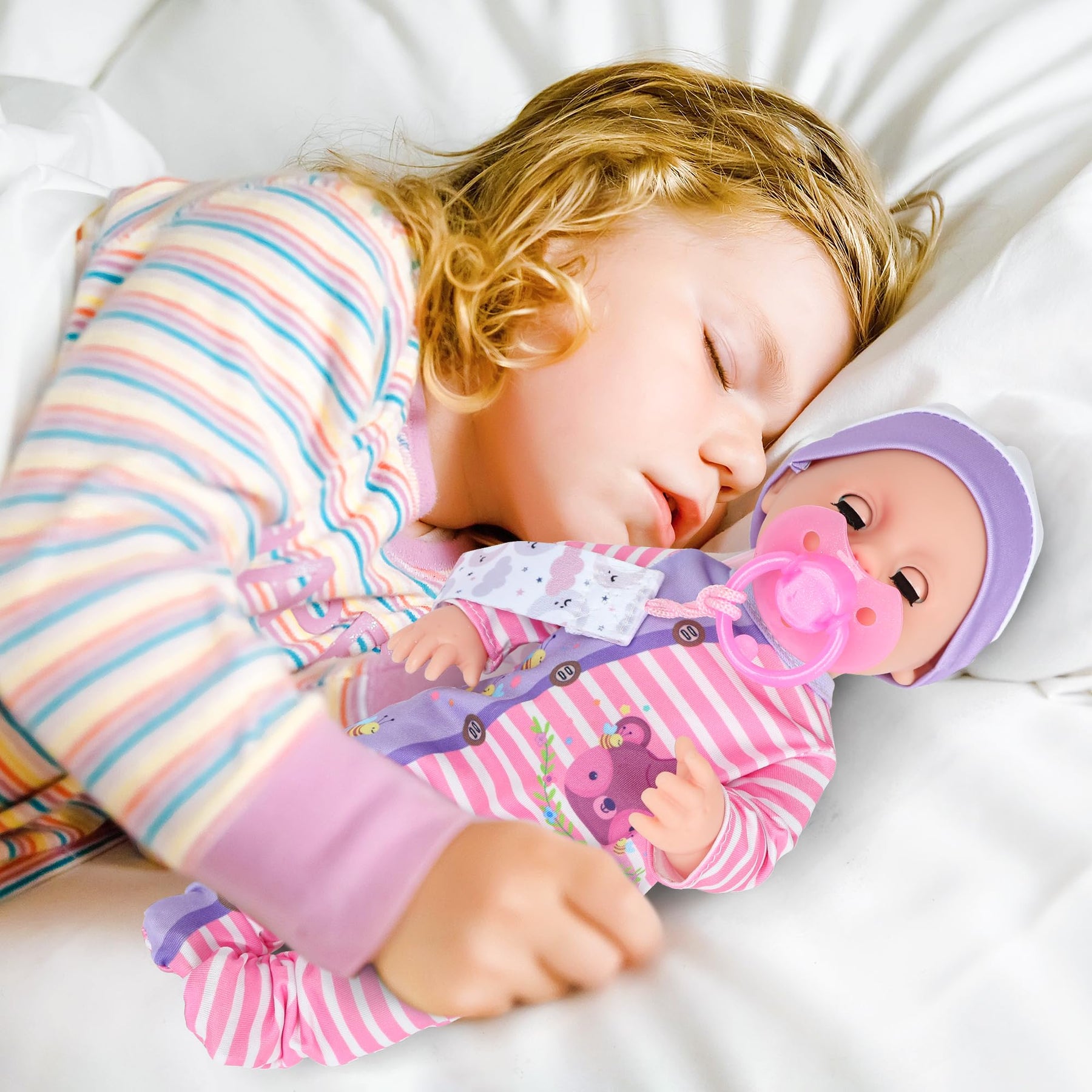 • 12 ZOLL BABYPUPPE MIT STUBENWAGENBETT: Dieses Babypuppenset ist mit einem tragbaren Bettchen ausgestattet. Perfekt für die Puppe, um sie auf lange Reisen mitzunehmen, für Aktivitäten im Freien oder einfach zum Kuscheln im Bett. Das Puppenset enthält 1 Babypuppe, 3 Kleidungsstücke, 1 Trinkflasche, 1 Schnuller, 1 Bettchen, 1 Decke, 1 Schüssel und Besteck.