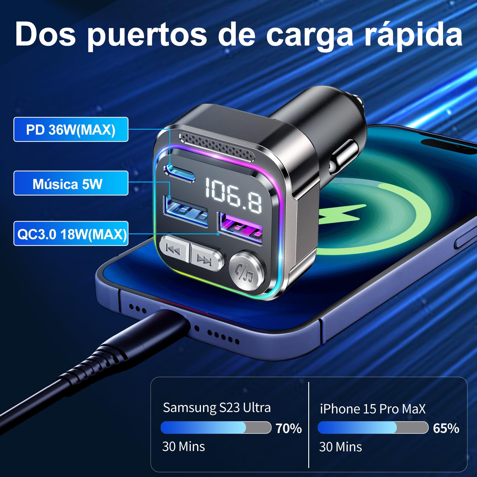 GizmoVine Bluetooth Adapter Auto, FM Transmitter, PD 36W + QC3.0 18W Dual-Schnellladung, Freisprechen, Musik-Player unterstützt 64 G-Laufwerk mit Lichtschalter