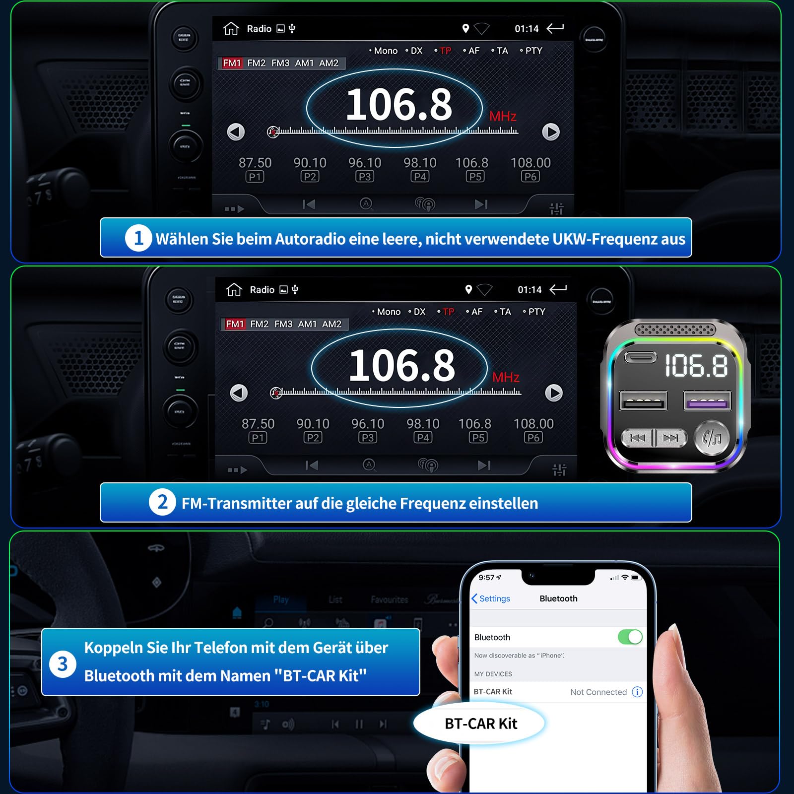 - Genießen Sie Musik im Auto: Verbinden Sie Ihr Smartphone über Bluetooth 5.3 und spielen Sie Musik direkt über die Auto-Lautsprecher, um das Fahrerlebnis zu verbessern.