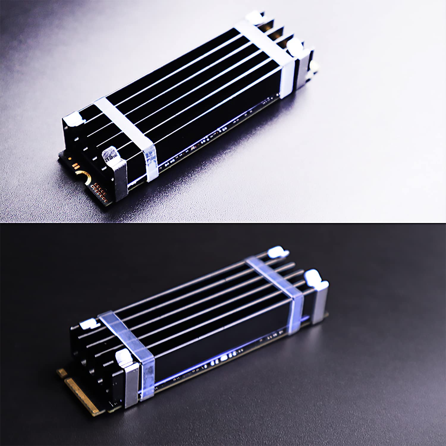 - Das Wärmeleitpad befindet sich zwischen dem M.2 SSD und dem Kühlkörper und leitet die Wärme vom M.2 SSD zum Kühlkörper. Es hat eine niedrige Viskosität, Wärmeleitfähigkeit, Isolierung und schadet den SSDs nicht.