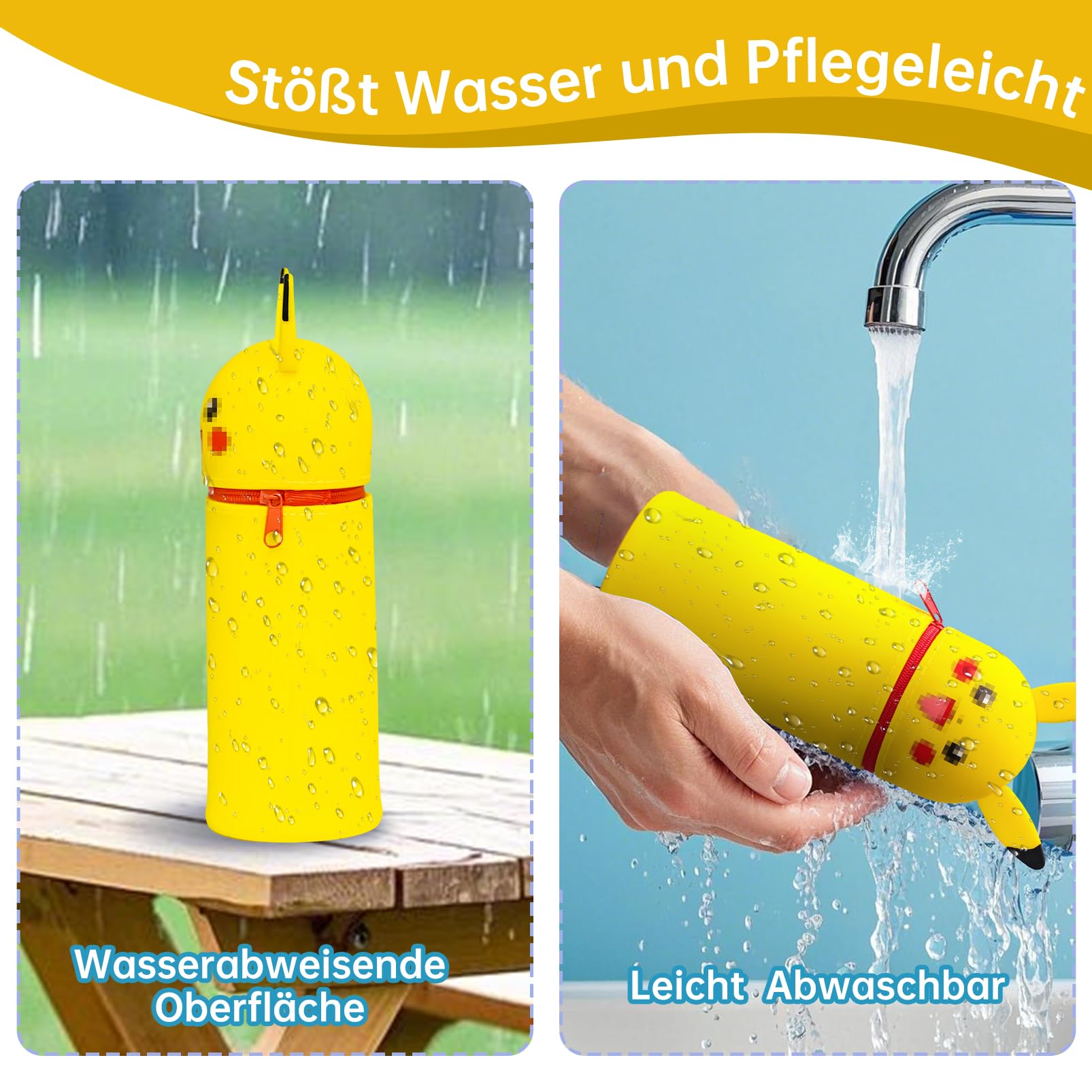 GOACRS Federmäppchen, Federtasche aus Weichem Silikon, Schlampermäppchen und Stifteköcher 2 in 1, Kawaii Stiftemäppchen Kleine Stiftehalter Cartoon Stiftetui, Gelb Stiftetasche für Kinder Teenager