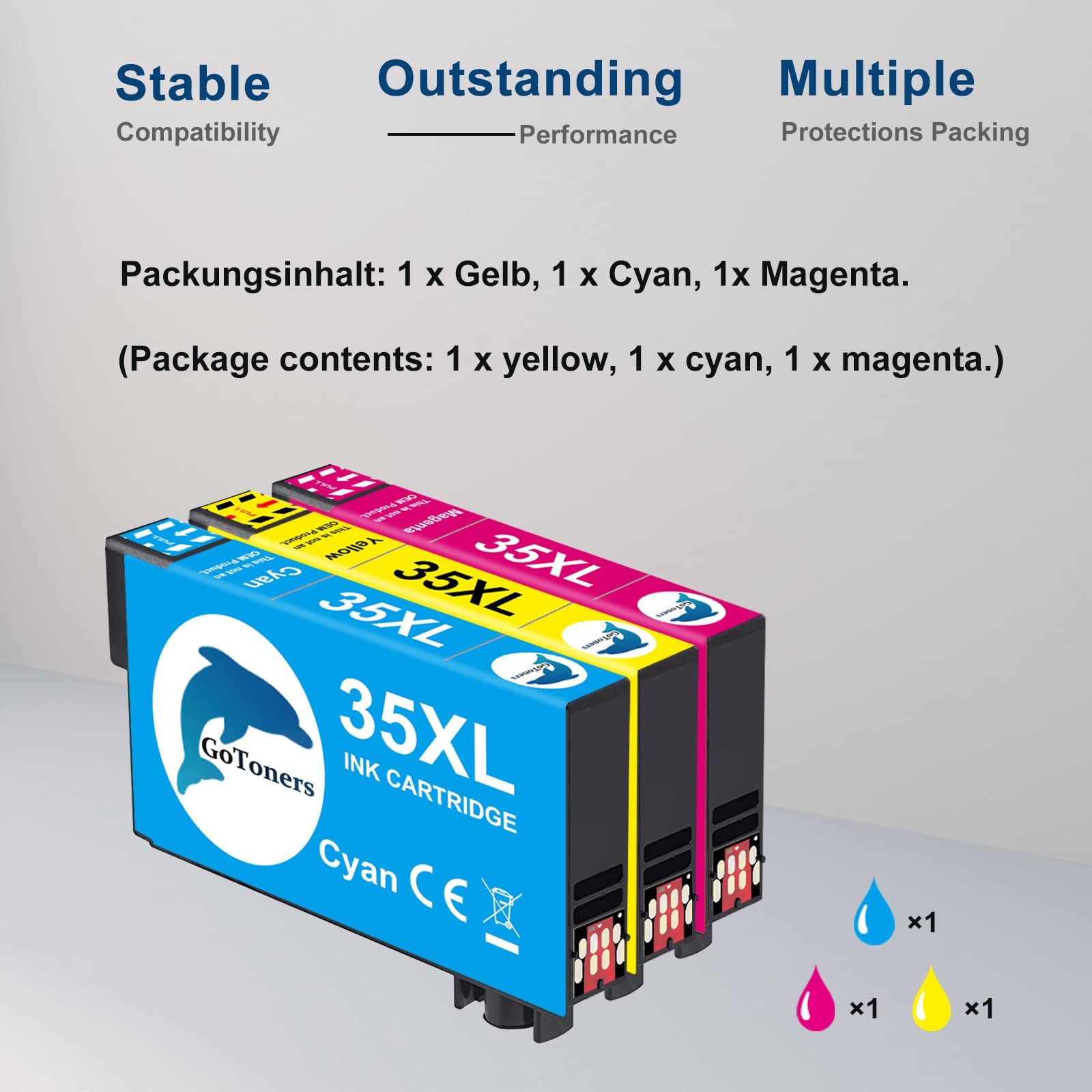 - Produktname: GoToners 35 XL Tintenpatronen (neuester Chip), Ersatz für Epson 35XL Druckerpatrone, Epson wf 4725 druckerpatronen, Epson wf 4720 druckerpatronen, Epson wf 4730 druckerpatronen, Epson wf 4740 druckerpatronen.