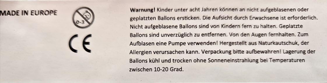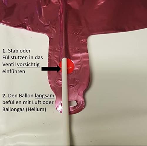 Einzelheiten: Der Ballon hat ein Patentventil eingebaut und kann mehrfach aufgeblasen werden // Zur Luftbefüllung einen Strohhalm nehmen und den Ballon durch das Ventil aufblasen // Achtung: bei Gasbefüllung nur Ballongas verwenden (nicht brennbar und ungiftig) // Versand nur ungefüllt // Höhe ca. 65cm, Breite ca. 60cm