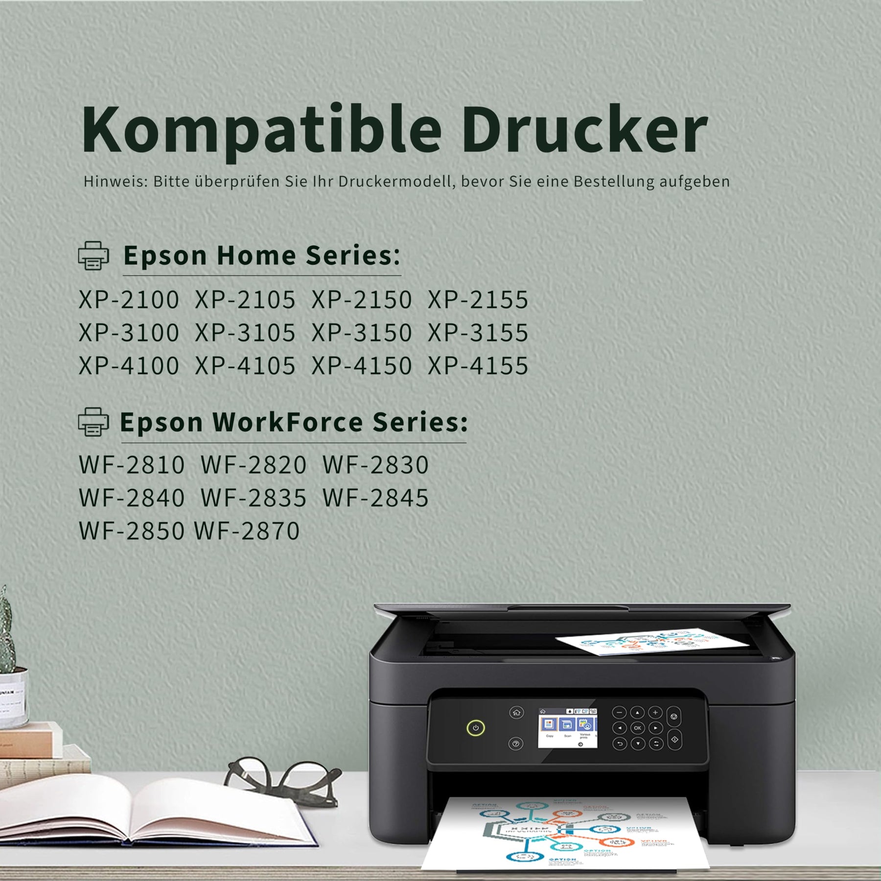 - Kompatibel mit: Epson Expression Home XP-2100 XP-2105 XP-2150 XP-2155 XP-3100 XP-3105 XP-3150 XP-3155 XP-4100 XP-4105 XP-4150 XP-4155, Epson Workforce WF-2810 WF-2820 WF-2830 WF-2840 WF-2835 WF-2845 WF-2850 WF-2870, Epson Workforce WF-2810dwf WF-2820dwf WF-2830dwf WF-2840dwf WF-2835dwf WF-2845dwf WF-2870dwf Drucker.