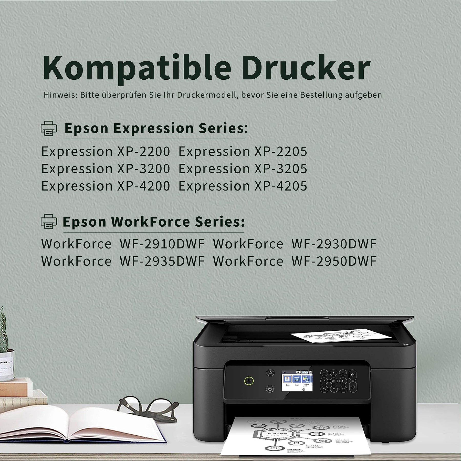 - Kompatibel mit: Epson Expression Home XP-2200 XP-2205 XP-3200 XP-3205 XP-4200 XP-4205, Epson Workforce WF-2910 WF-2930 WF-2935 WF-2950, Epson Workforce WF-2910DWF WF-2930DWF WF-2935DWF WF-2950DWF Drucker.
