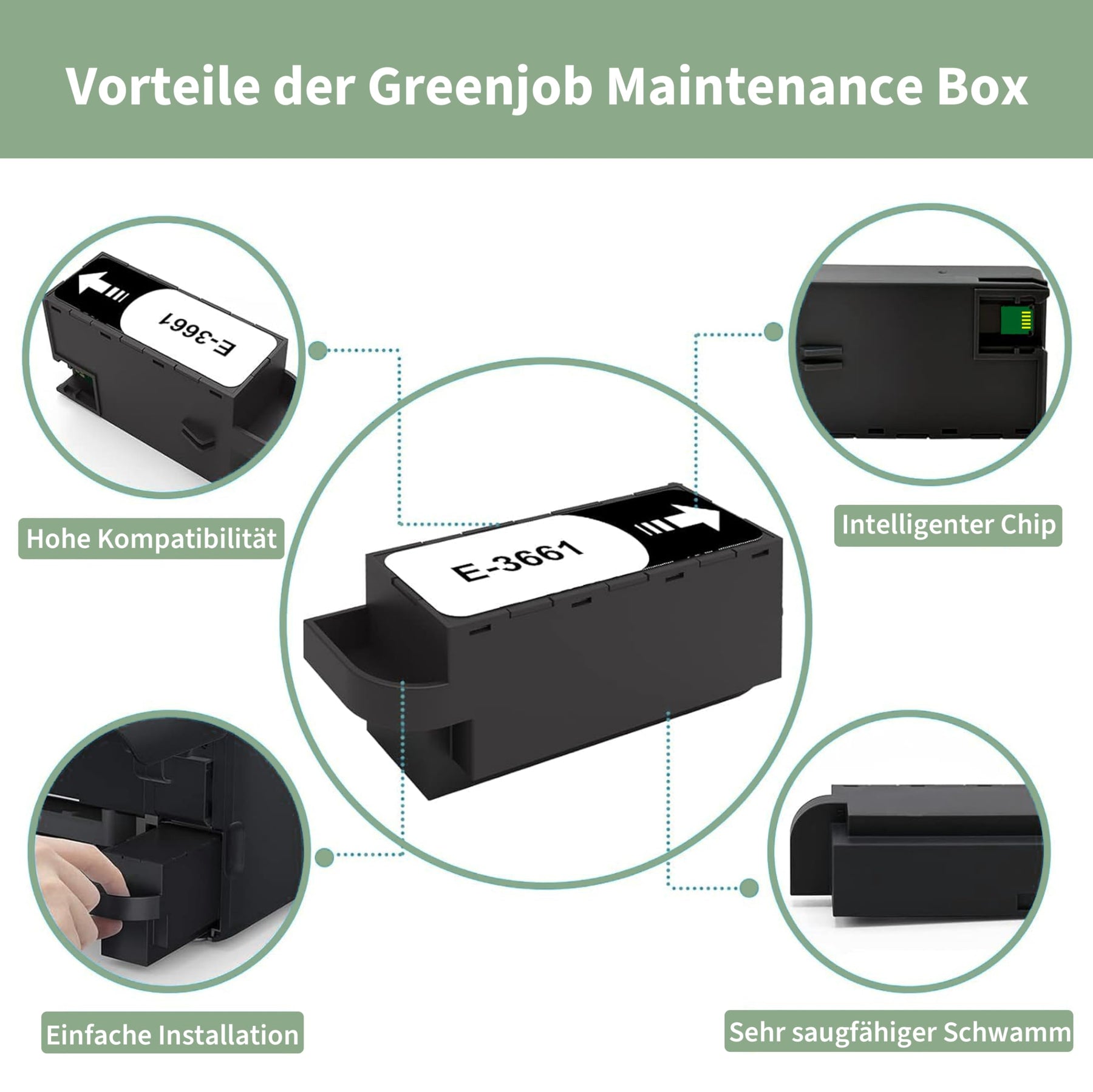 - Produktname: Greenjob Wartungsbox T3661 Kompatibel für Epson T3661 Tinten Wartungsbox. (NICHT Original ).