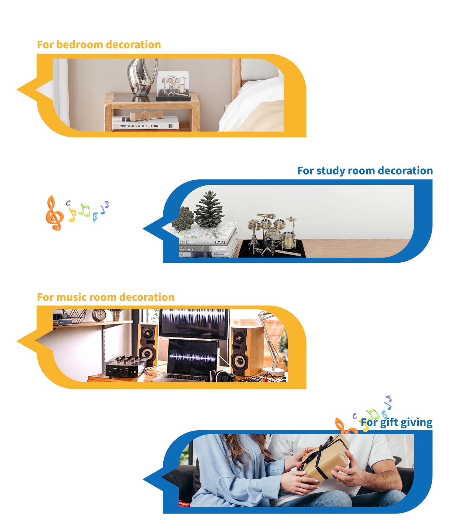 - 【Trommel-Ornament】: Dieses Desktop-Schlagzeug ist auch perfekt für Musikliebhaber, um ihr Schlafzimmer, Arbeitszimmer oder Musikstudio zu dekorieren.