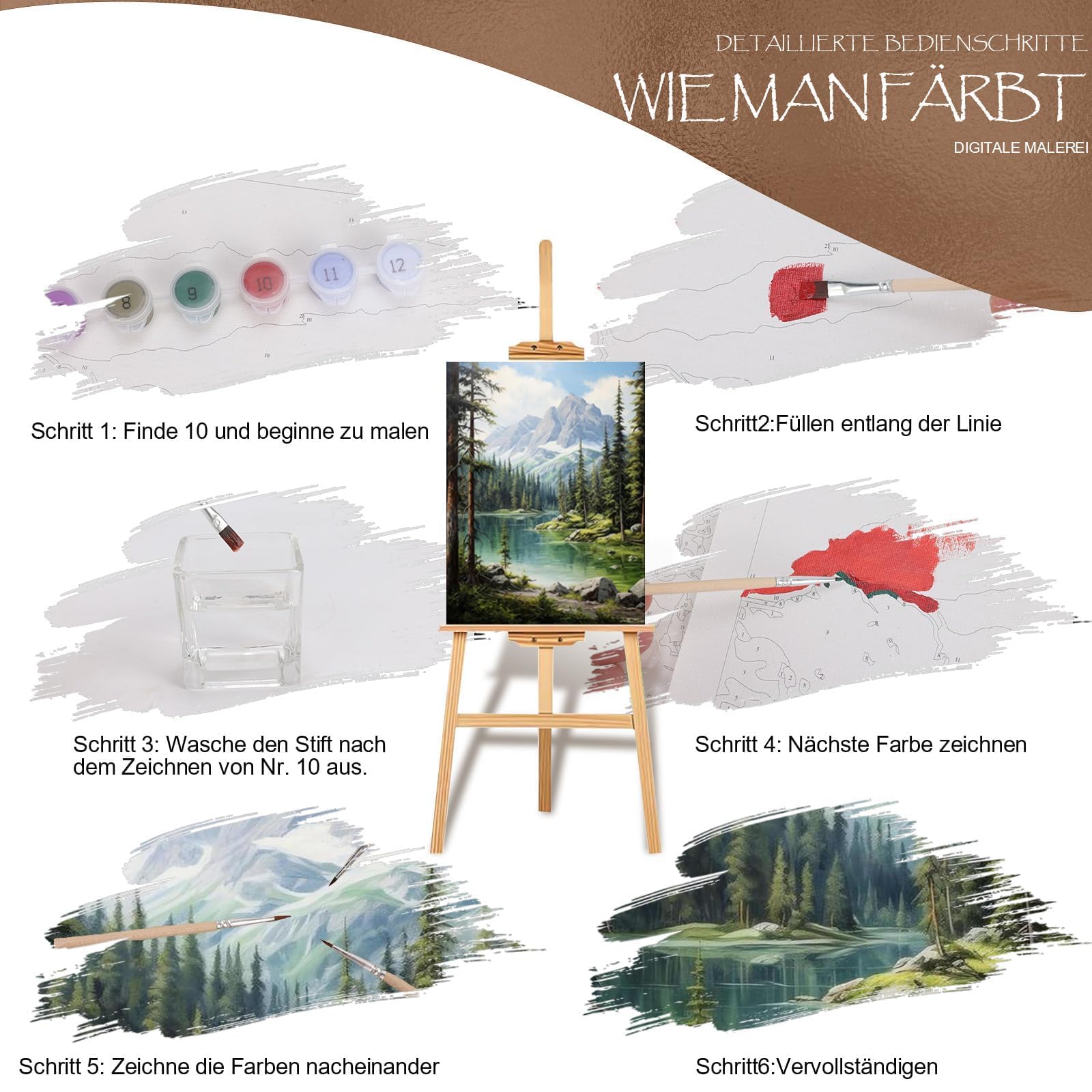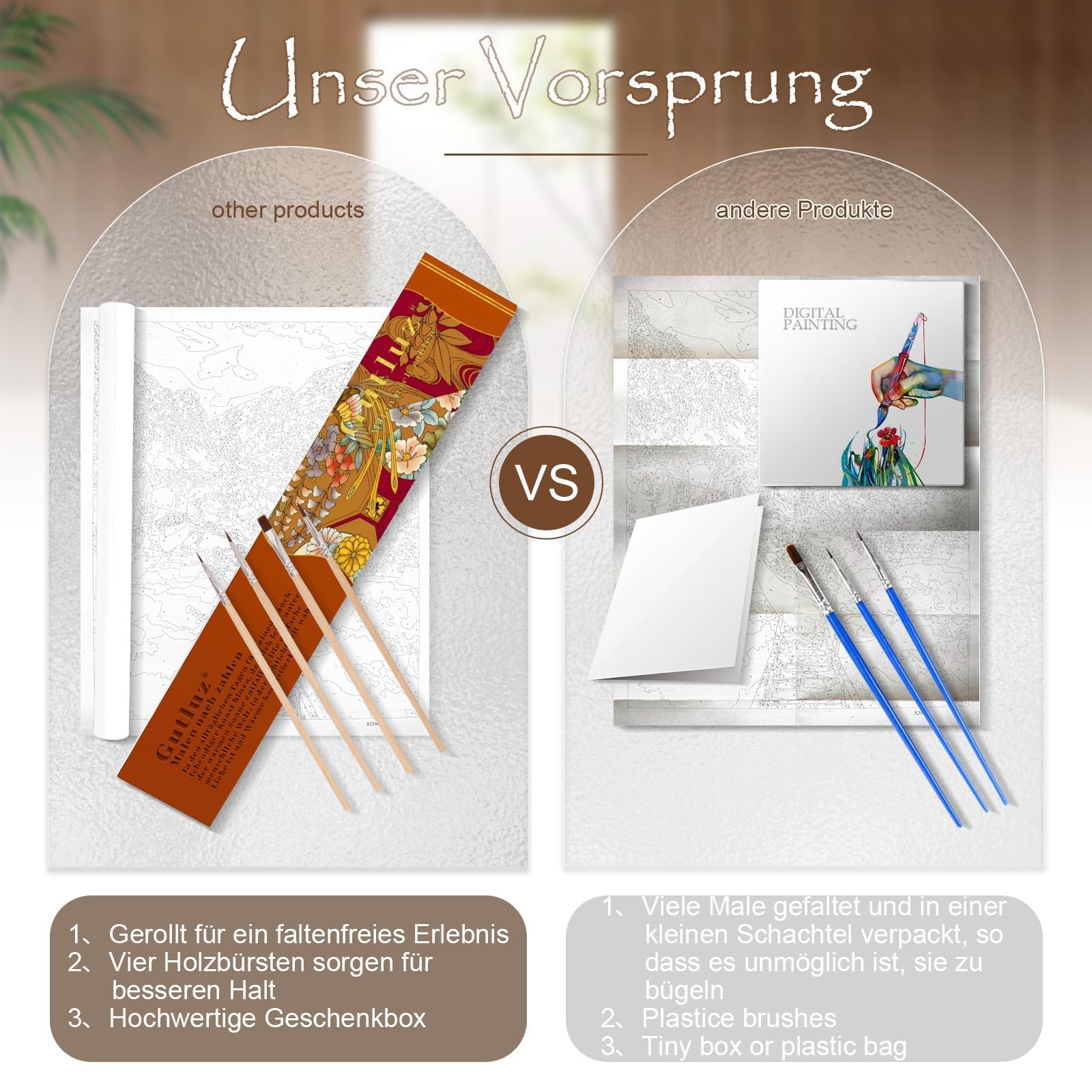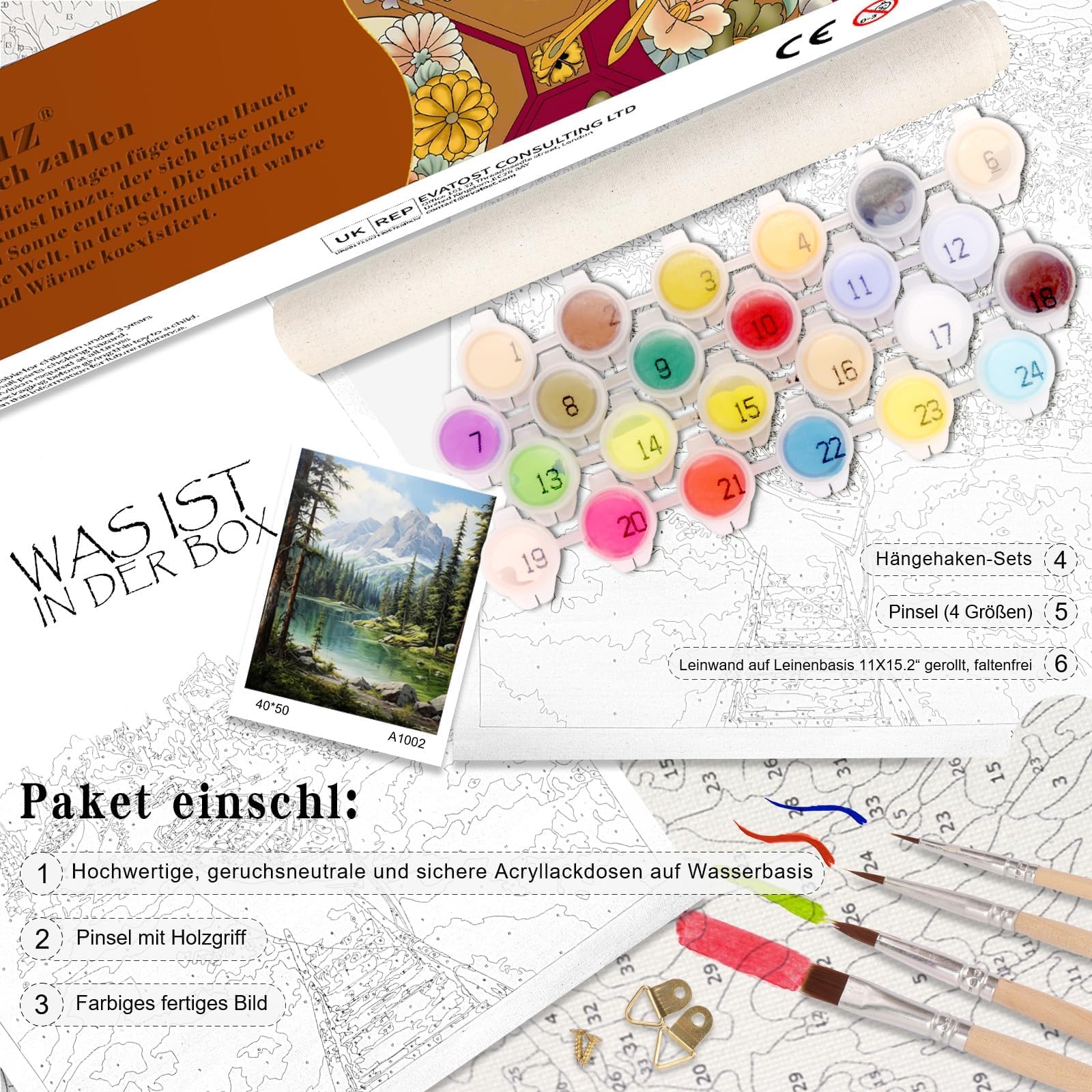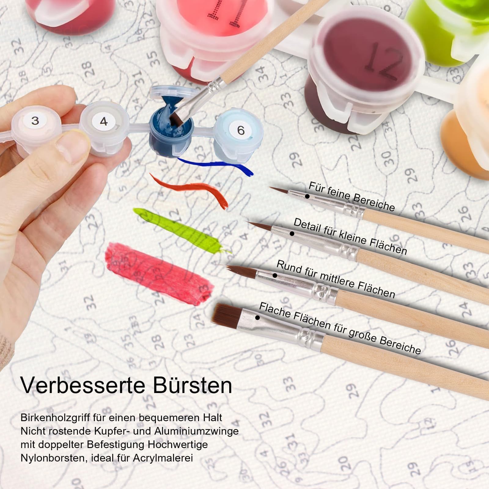 - Malen Nach Zahlen Erwachsene Lieferumfang: 1 vorgedruckte Leinwand 40 X 50 CM (ohne Rahmen), 1 Set Acrylfarbe, 4 hochwertige Pinsel, 1 Wandbehang-Set, 1 farbige Postkartenführung, 1 Papierkopie nummerierter Leinwand als Referenz.