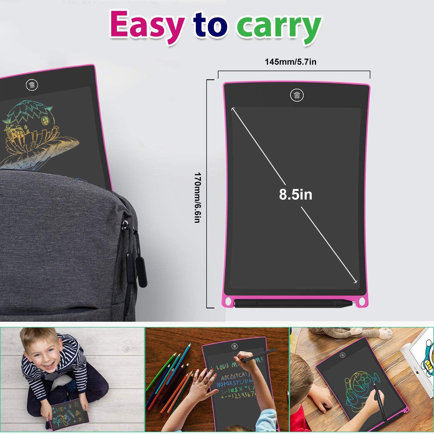- Perfekt für Unterwegs und Lange Autofahrten: Bunte lcd schreibtafel ist sehr leicht, einfach zu bedienen und Einfach und klein zum mitnehmen, Es ist ideal für Autofahrten, zum Üben von Buchstaben, Zahlen und zeichunng,