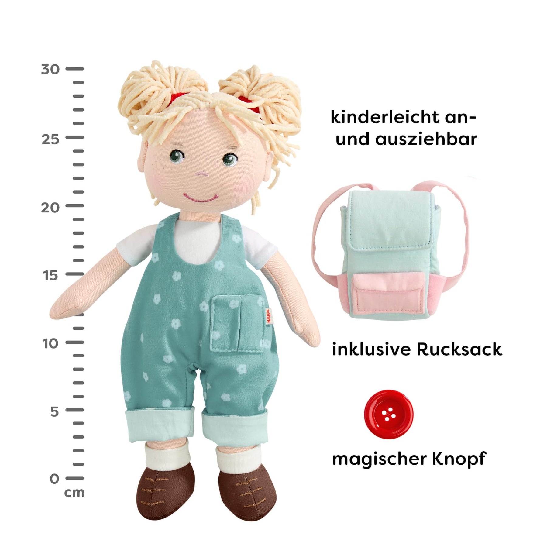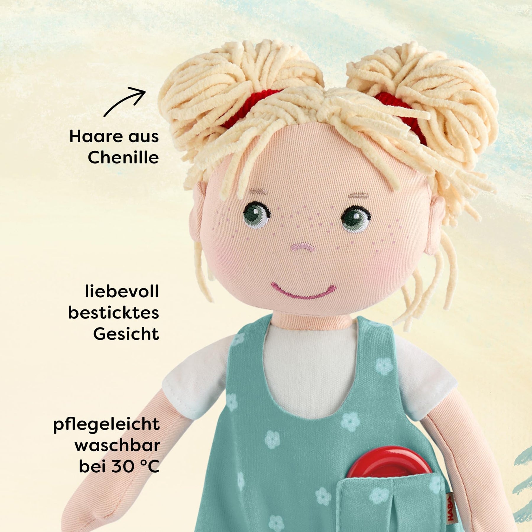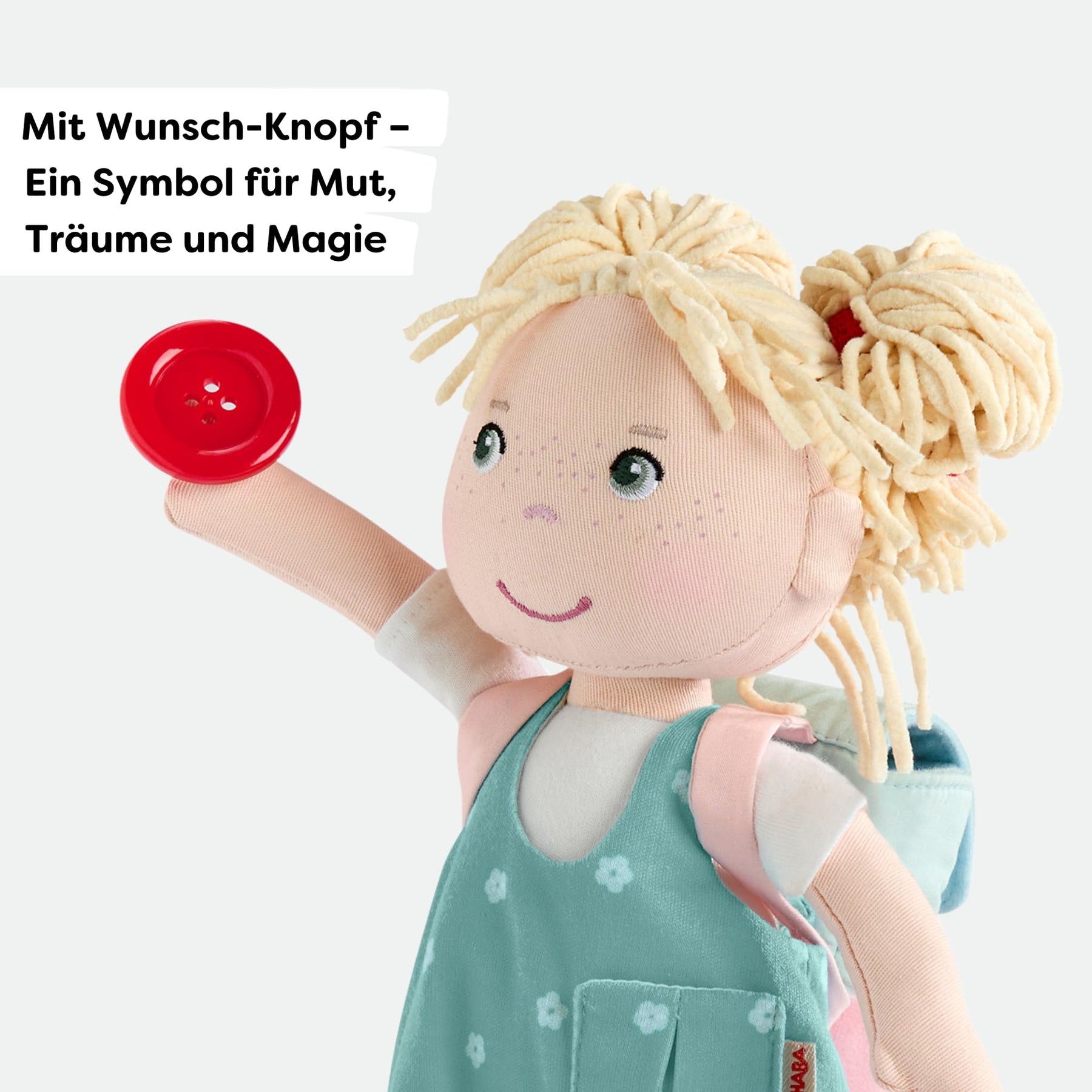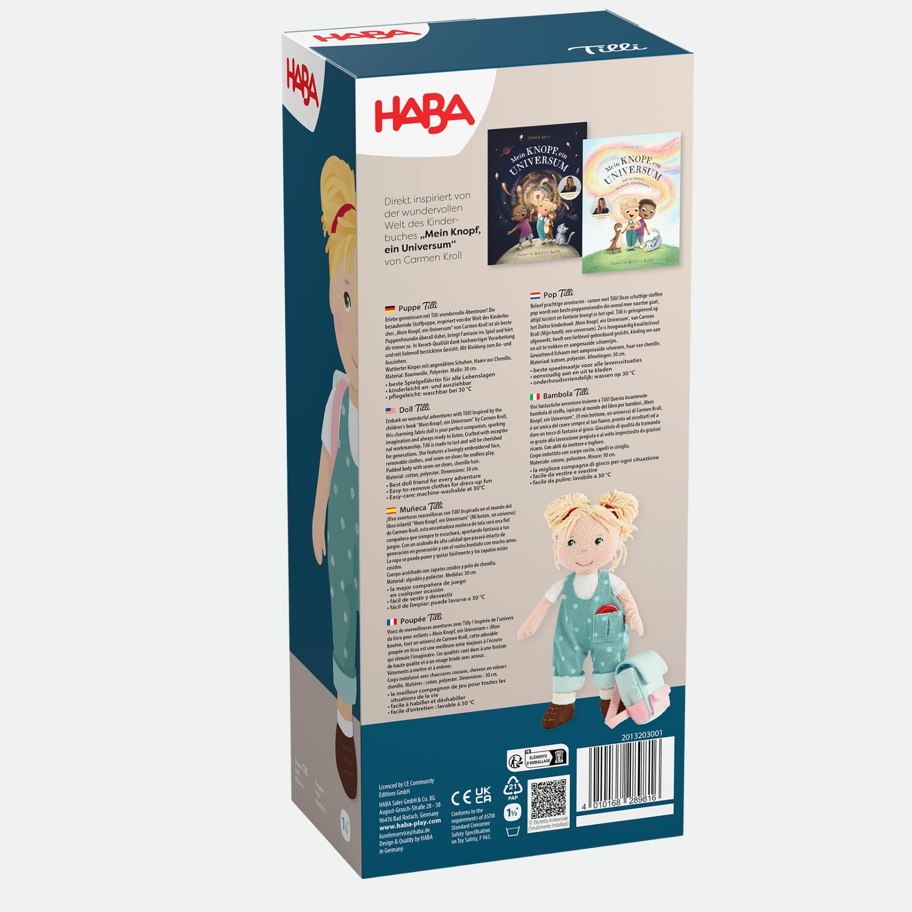 Erlebe gemeinsam mit Tilli wundervolle Abenteuer! Die bezaubernde Stoffpuppe, inspiriert von der Welt des Kinderbuches "Mein Knopf, ein Universum" von Carmen Kroll ist als beste Puppenfreundin überall dabei, bringt Fantasie ins Spiel und hört dir immer zu. In Vererb-Qualität dank hochwertiger Verarbeitung und mit liebevoll besticktem Gesicht. Mit Kleidung zum An- und Ausziehen. Schuhe angenäht.