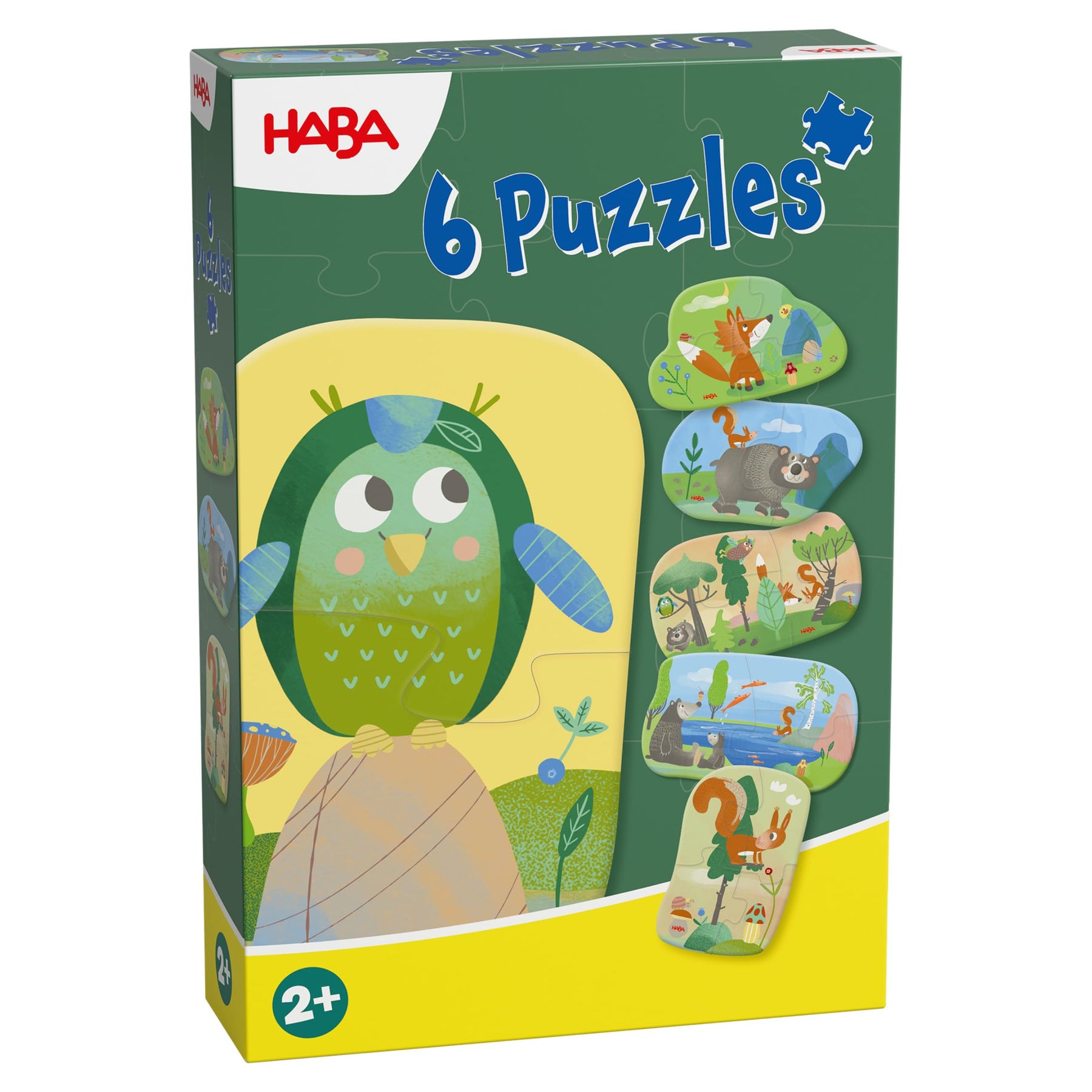 Die tierisch spannenden Puzzles „Waldtiere“ sind der ideale Einstieg ins Puzzeln für Waldtier-Fans ab 2 Jahren. Die 6 Puzzles bestehen aus 2 Puzzleteilen, die sich kinderleicht zu Waldtieren in ihrer natürlichen Umgebung zusammensetzen lassen. Die Puzzles zeigen die Waldfreunde Eule, Eichhörnchen, Bär und Fuchs – unterwegs im Wald und am See. Mit liebevoll gestalteten Motiven und griffigen Puzzleteilen bieten diese 6 Puzzles schon den jüngsten Kindern ein großes Vergnügen.