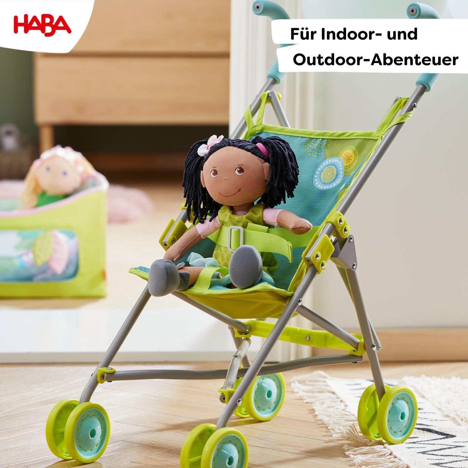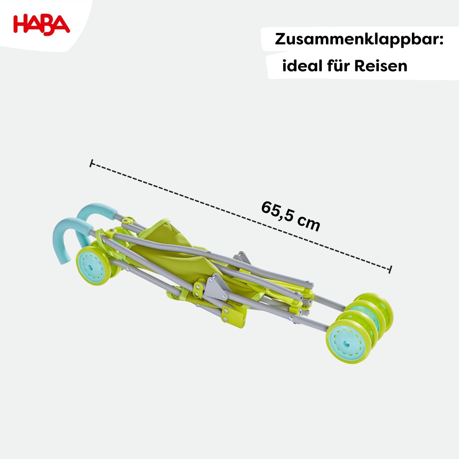 - KOMFORTABLE AUSFAHRTEN: Der grüne HABA Puppen-Buggy sorgt für entspannte Spaziergänge mit Puppen und Stofftieren – ideal für realistische Eltern-Kind-Rollenspiele. Einfach Puppe anschnallen und schon geht die Reise los.