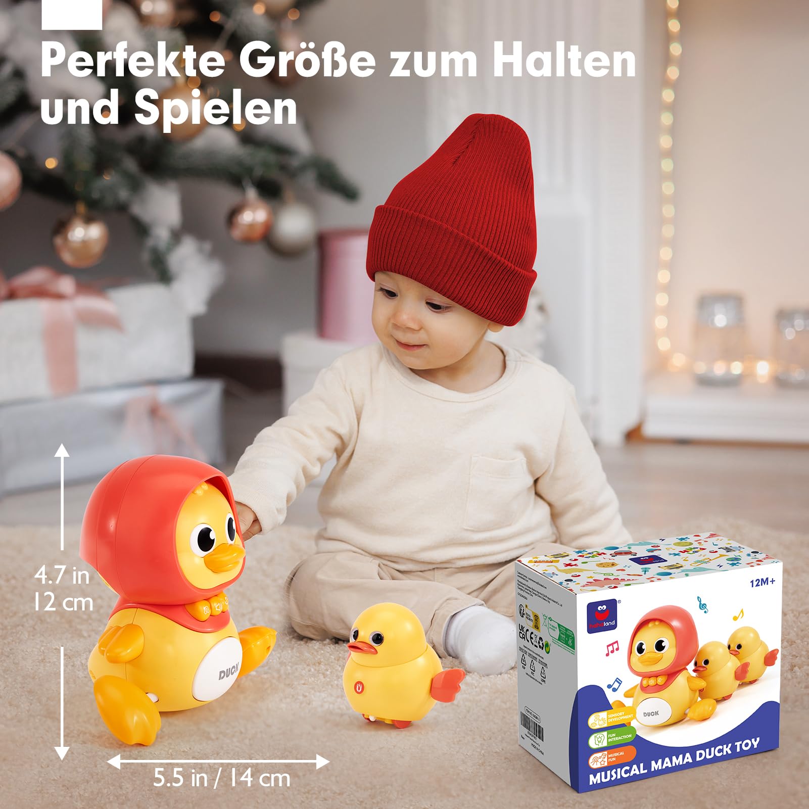 - đŠă3-in-1 Interaktive Entenă EnthĂ€lt eine Mama-Ente und ihre zwei KĂŒken, die magnetisch verbunden sind. Ideal fĂŒr interaktives Spielen, das Ihr Baby begeistert! Perfekt als Musikspielzeug fĂŒr Babys von 6 bis 12 Monaten.