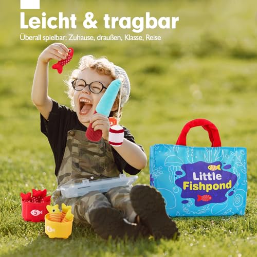 - Gemeinsam Spaß haben!: Mit einem Angelspielzeugset, bestehend aus einer Angelrute, 15 Fischen, 5 Fisch-Eimern und einer Aufbewahrungstasche, können Kinder gemeinsam Angelspiele spielen oder von ihren Eltern begleitet werden. So werden nicht nur ihre sozialen Fähigkeiten gefördert, sondern auch ihre Hand-Augen-Koordination trainiert.