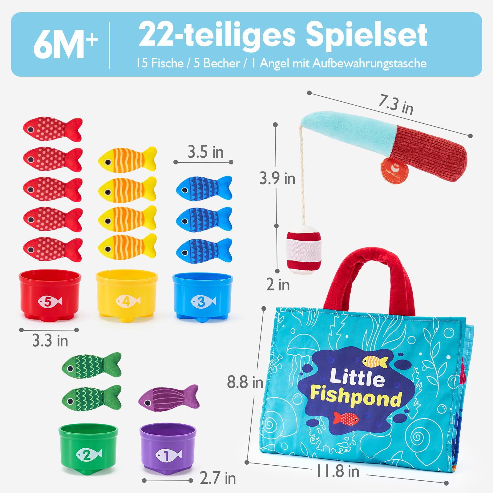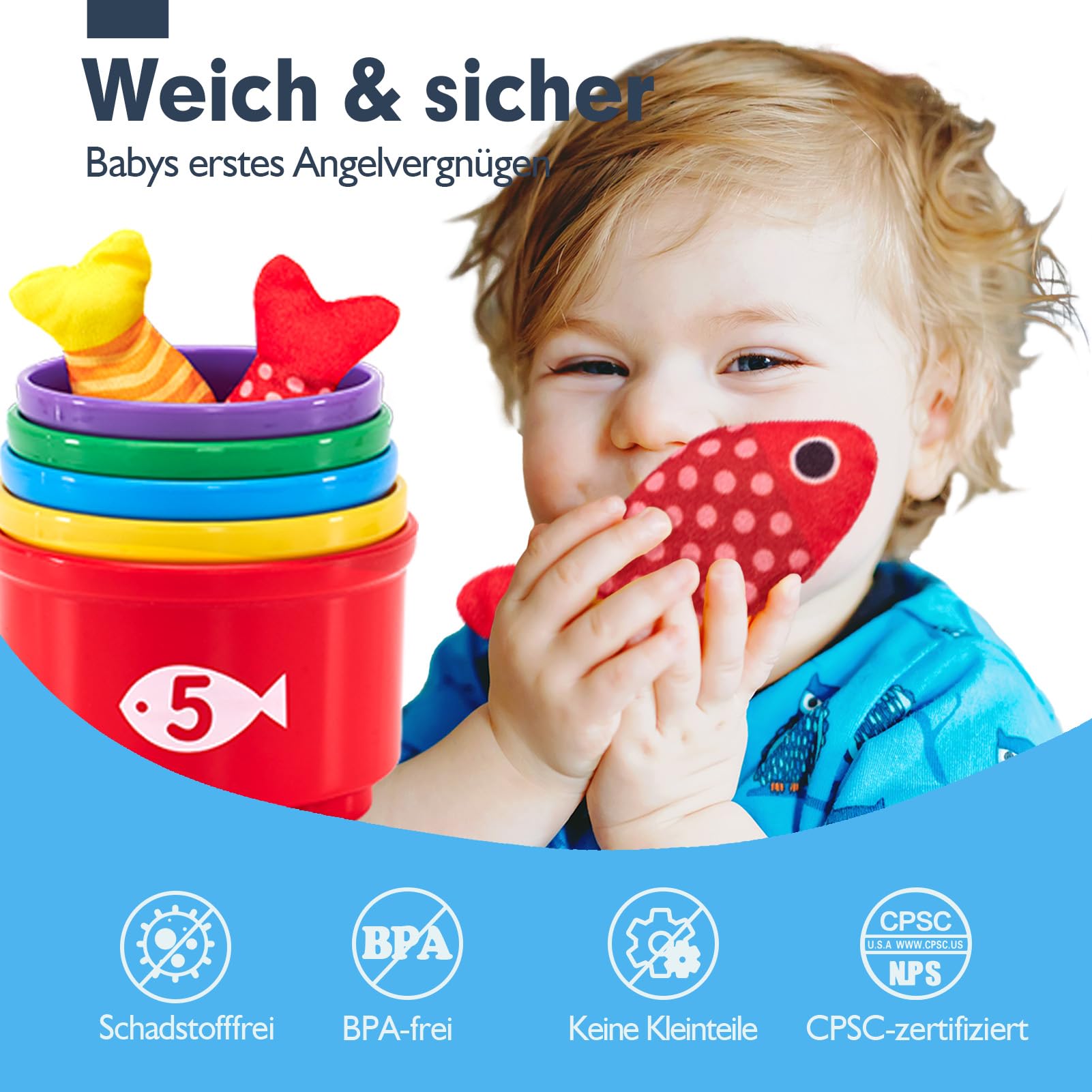 - Sicher & Weiches Stoffmaterial in lebendigen Farben & Hochwertiges: Unser Angelspielzeug aus hochwertigem Filz bietet eine hervorragende Haftung, die es von anderen aus Holz und Kunststoff hergestellten unterscheidet. Unsere Fische und Angelruten sind weich und angenehm anzufassen, perfekt für kleine Hände. Die Stapelbecher bestehen aus babyfreundlichem Polyester und ungiftigem PP-Material, um eine sichere und beruhigende Spielzeit zu gewährleisten. Die lebendigen Farben dieses Montessori-Spielzeugs ziehen Kinder an und halten sie stundenlang beschäftigt.