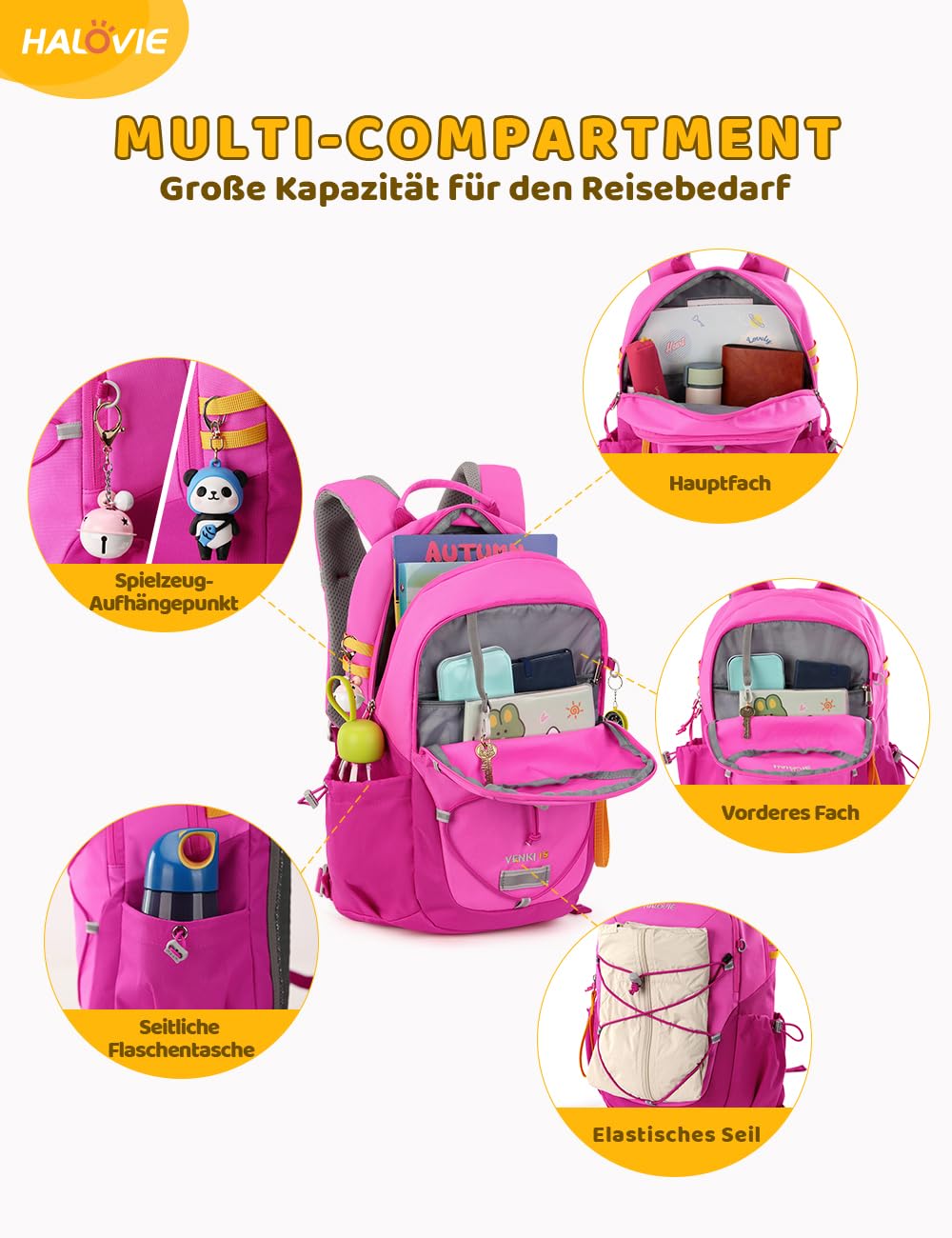 - Reflektierende Eigenschaften & Niedlicher Pfeife: Die Kinderrucksacke sind mit mehreren reflektierenden Akzenten auf der Vorderseite ausgestattet, um die Sichtbarkeit und Sicherheit Ihres Kindes bei Nacht zu gewährleisten. Der Brustgurt des Kinder Rucksacks ist mit einer integrierten Pfeife ausgestattet, die nicht nur Spaß macht, sondern dem Kind auch ermöglicht, im Notfall um Hilfe zu signalisieren.