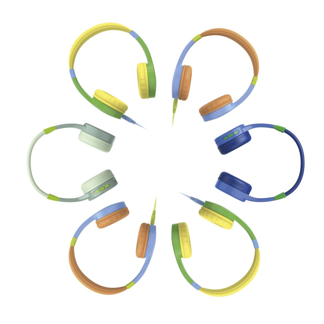 Mit dem Kinderkopfhörer „Kids Guard“ bekommen die Kids sicheren Sound auf die Ohren. Eine Lautstärkebegrenzung ermöglicht eine maximale Lautstärke von 85 dB – so sind die empfindlichen Kinderohren auch bei langen Soundreisen durch Hörspiel, Hörbuch und Lieblingslieder geschützt. Stillsitzen ist schwierig, wenn gerade der Lieblingshit läuft, deshalb hat der On-Ear-Kopfhörer ein abnehmbares Kabel mit Klinkenstecker: kommt beim Toben Zug darauf, löst sich dieses aus der Kopfhörerbuchse – und geht das Kabel mal kaputt, einfach austauschen. Der Kinderkopfhörer ist flexibel, bequem und robust: Das flexible Kopfband mit den weichen Ohrpolstern lässt sich stundenlang tragen und bleibt auch stabil, wenn es verdreht wird; zudem lässt es sich auf die Kopfgröße des Kindes verstellen. Die einseitige Kabelführung ermöglicht noch mehr Bewegungsfreiheit. Schule im Onlineformat, Lernplattformen, Chats, interaktive Hörspiele und Lernplattformen sowie Telefonate mit Großeltern und Freunden – alles möglich, denn mit dem integrierten Mikrofon lässt sich der Kopfhörer für Kinder auch als Headset einsetzen. Alle Funktionen des Kopfhörers lassen sich kinderleicht über den im Kabel integrierten Multifunktionsbutton steuern. Der Kinderkopfhörer eignet sich für Kinder ab 4 Jahren und für alle, denn das genderneutrale, kunterbunte Design eignet sich sowohl für Jungen als auch für Mädchen.