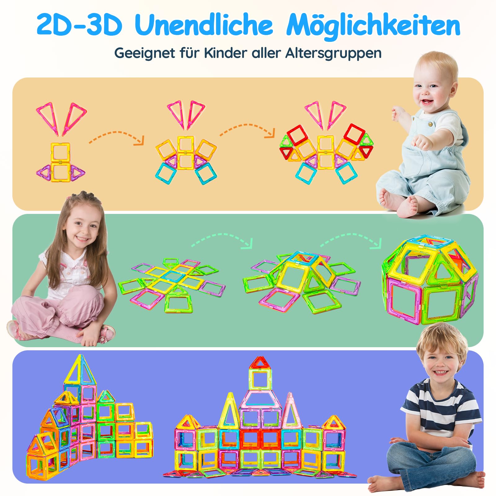 - 【Lernspielzeug】Magnet bausteine verbinden auf perfekte Weise Lernen mit Spaß. Durch das Spielen mit magnetbausteine wird die Fantasie der Kinder beim Bauen angeregt und ihre Begeisterung für STME-Fächer gefördert. Magnet bausteine ermutigen Kinder, vom 2D- zum 3D-Bauen überzugehen.