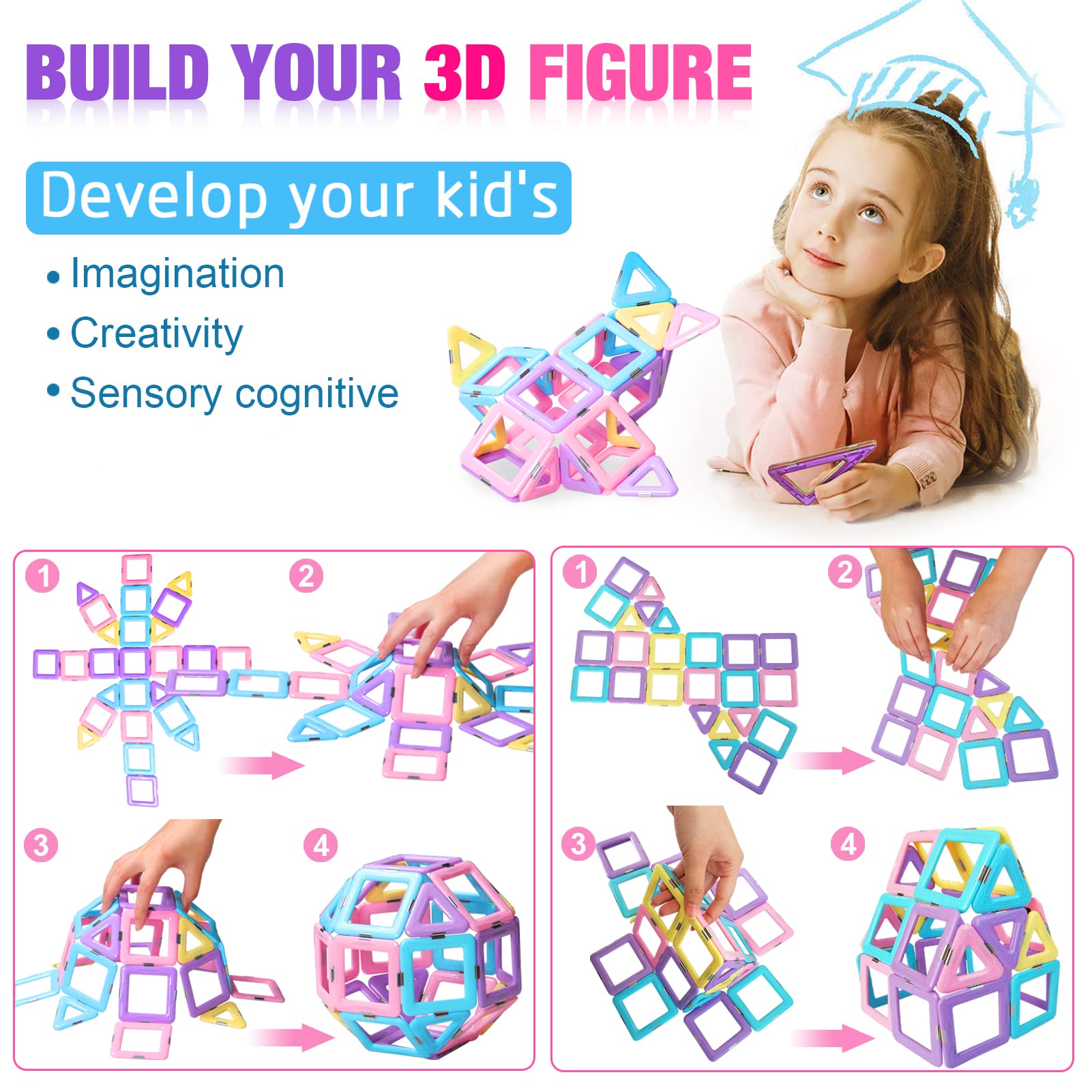 - 【Ideale Geschenke】: Dies magnetische bausteine kinderspielzeug ist definitiv die besten geschenke für 3 4 5 6 7 8 jahre alte mädchen jungen kinder . Die pastellfarben waren so hübsch. Große geschenkidee für jeden anlass, Festival Weihnachten, Geburtstag geschenk spielzeug. Das lächeln auf dem gesicht des kindes war unbezahlbar!