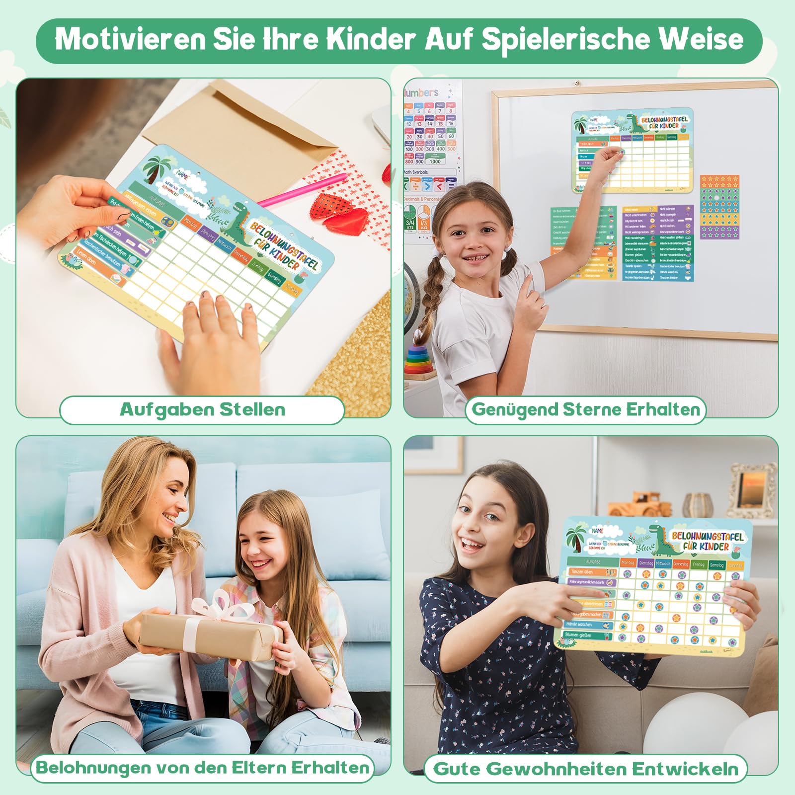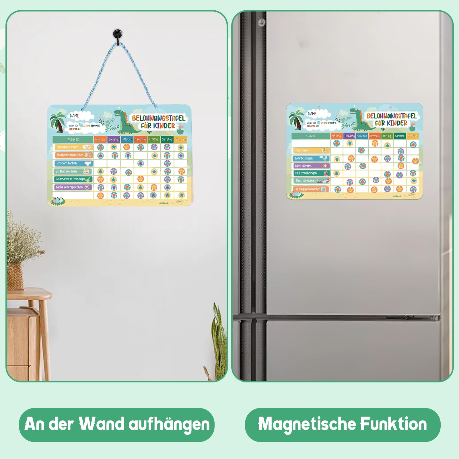 - 【Ermutigt Gutes Verhalten】Verwenden Sie diese Belohnungstafel Kinder, um die Dinge zu arrangieren, die Ihr Kind jeden Tag erledigen muss, sei es persönliche Hausarbeit oder andere Dinge wie Töpfchen. Sie können jeden Tag verfolgen und aufzeichnen, den Kindern helfen, Ziele zu setzen und zu belohnen, und sie gute Gewohnheiten und Verantwortungsbewusstsein entwickeln lassen.