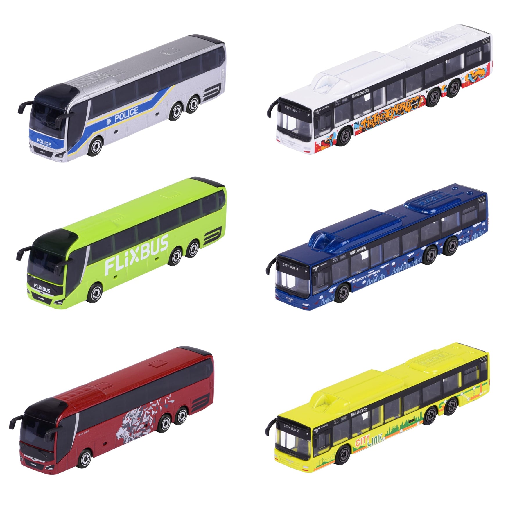 Majorette MAN City Bus (1 Modellauto) - Spielzeugbus aus Metall mit Freilauf, zufällige Auswahl aus 6 Modell-Fahrzeugen für Sammler und Kinder ab 3 Jahre, je ca. 13 cm