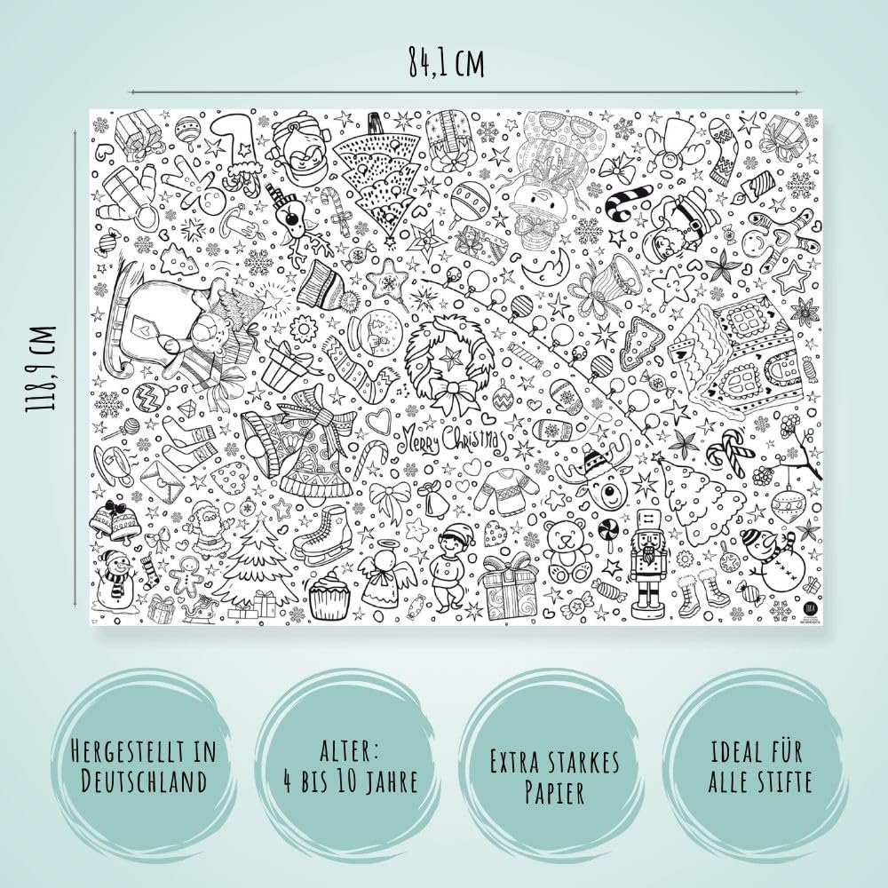 - TOLLE KINDERBESCHÄFTIGUNG: Unsere Kindertischdecke ist perfekt geeigent für die Vorweihnachtszeit, das Weihnachtsfest und die Feiertage mit der Familie. Für bis zu 6 Kinder gleichzeitig.