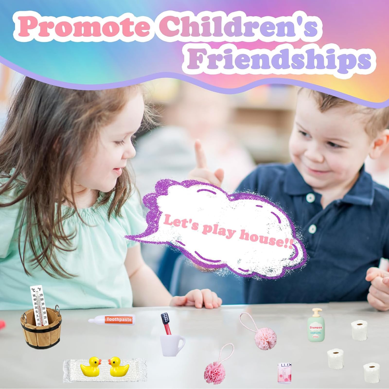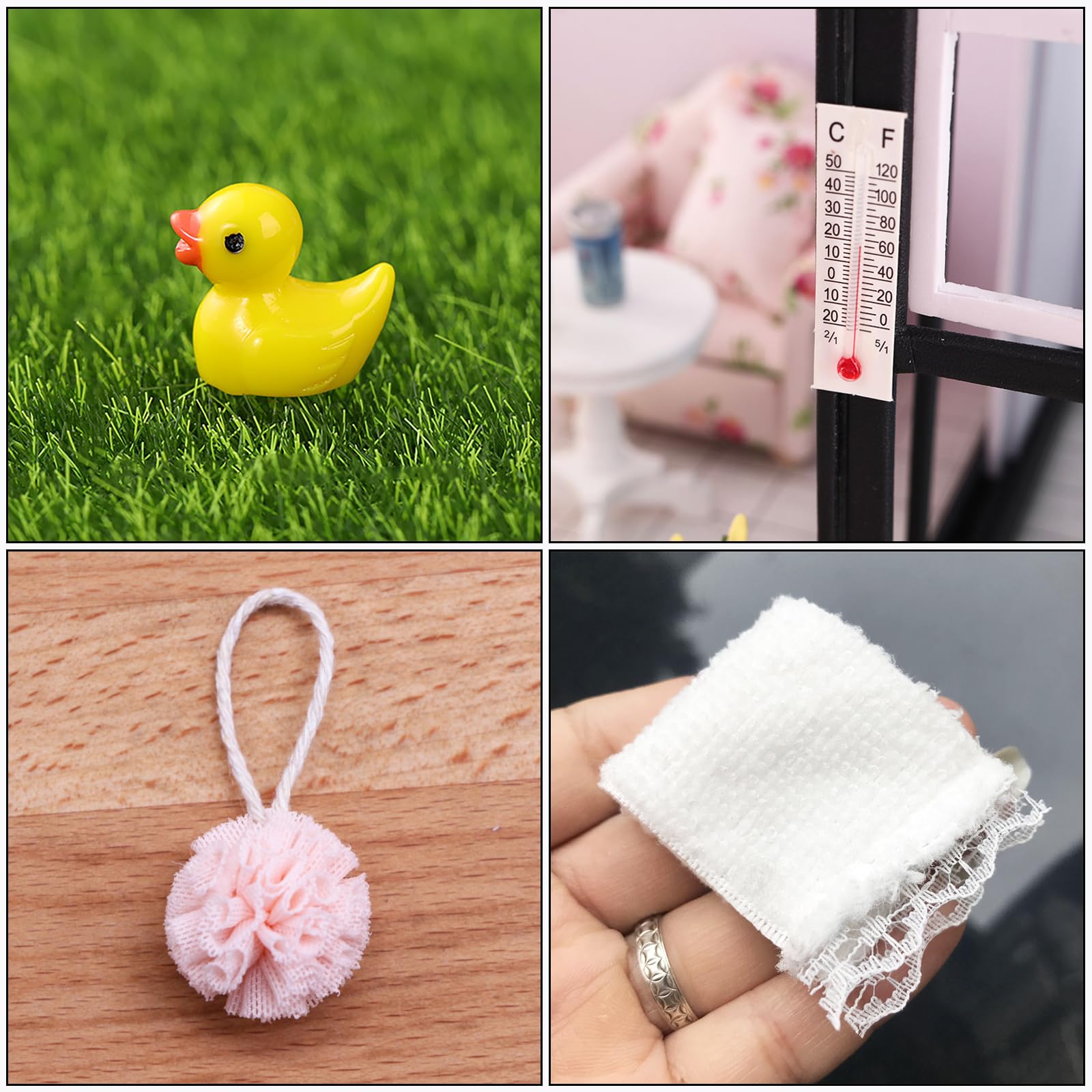 - [Hochwertige Materialien] Dieses miniatur badeset ist aus hochwertigem kunststoff, sicher, robust und langlebig, ungiftig und harmlos, nicht leicht zu verblassen und zu beschädigen, realistisches und farbenfrohes design, es ist die perfekte dekoration für das puppenhaus, kinder können spielen und den spaß genießen, ohne sich sorgen zu machen. Hinweis: kinder sollten unter aufsicht von erwachsenen spielen, um ein verschlucken zu verhindern.