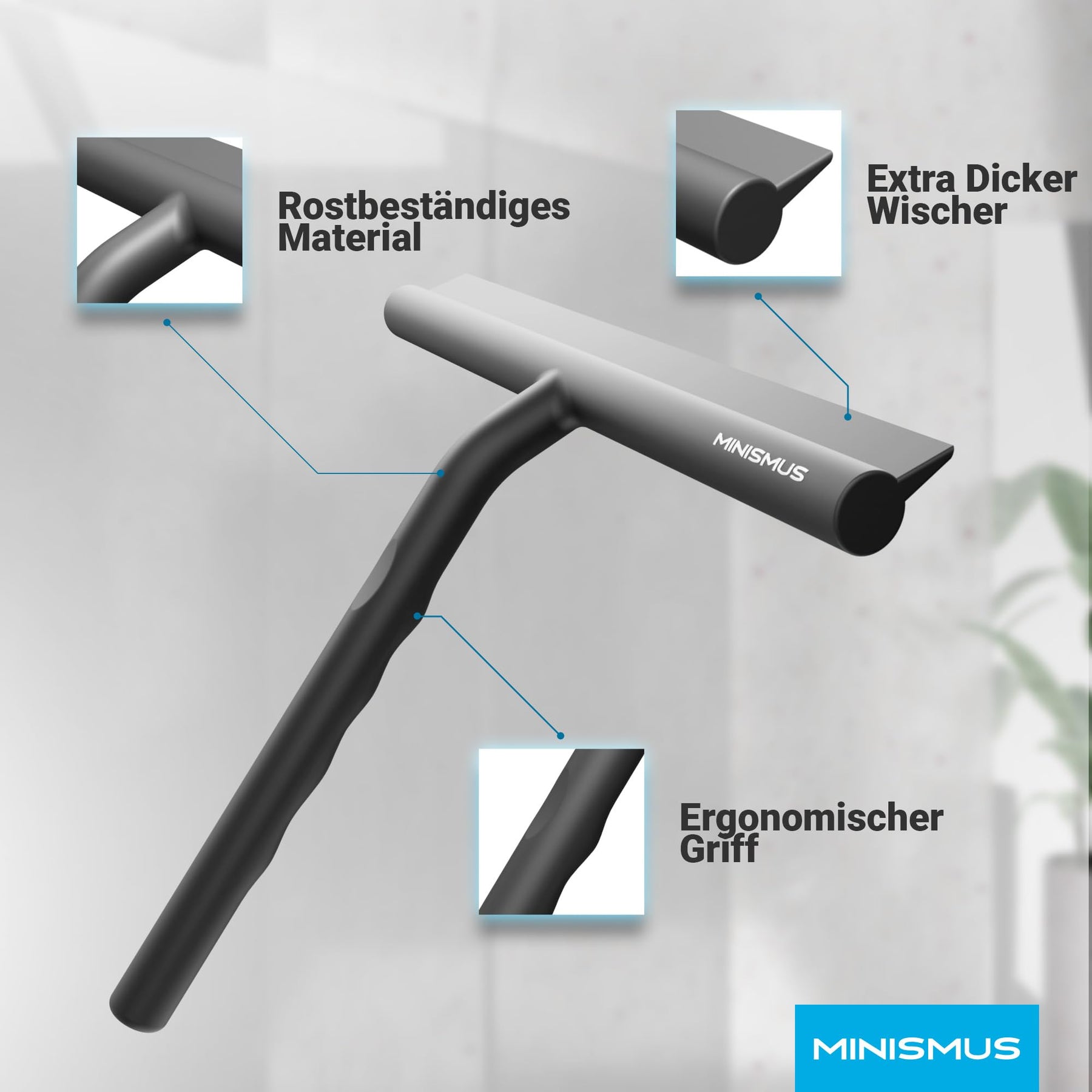 MINISMUS Fensterabzieher mit Aufhänger – Profi Abzieher Dusche - Duschabzieher – Schlierenfrei – Hochwertiger Silikon - Antirutsch (Schwarz)