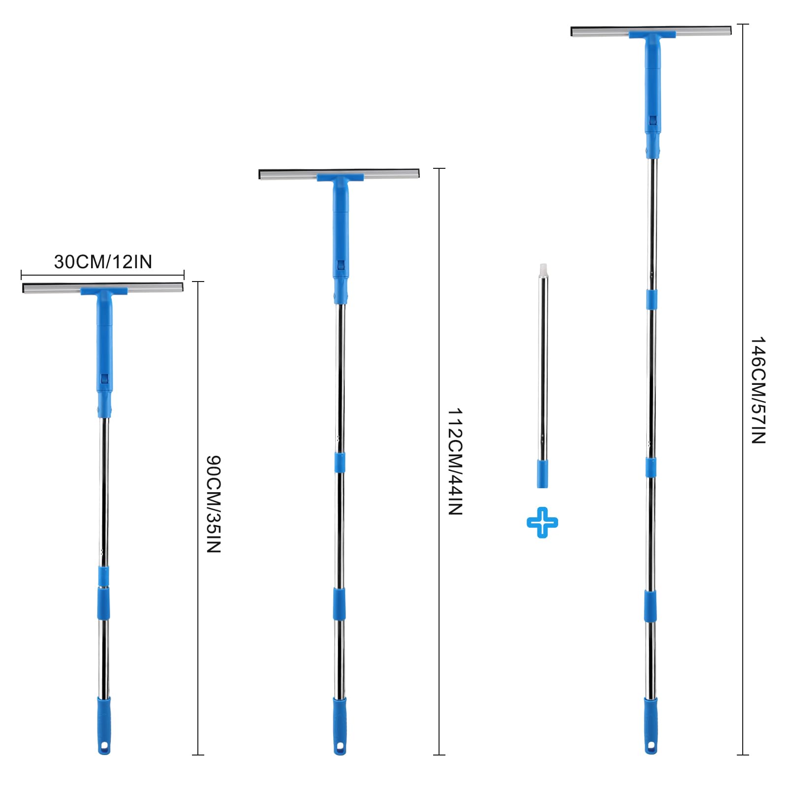- Teleskopstange: Die hochwertige Edelstahlstange kann bis auf 146cm verlängert werden, geeignet für die Reinigung von hochgelegenen Stellen, die normalerweise nicht erreichbar sind. Wenn die Fenster viel höher sind, stehen an Amazon mehr Stangen zur Verfügung, können Sie suche ASIN B08CH9MP1H.