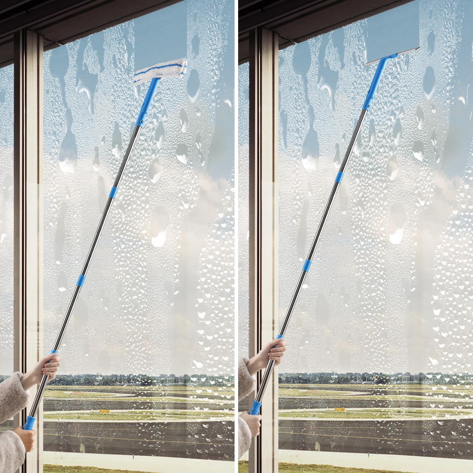 - Fensterreiniger-Set: Der Fensterabzieher + Mikrofaserschrubber + Langer Griff ist das perfekte Fensterreinigungswerkzeug, um Ihre hohen und niedrigen Fenster effizient zu waschen und zu reinigen.