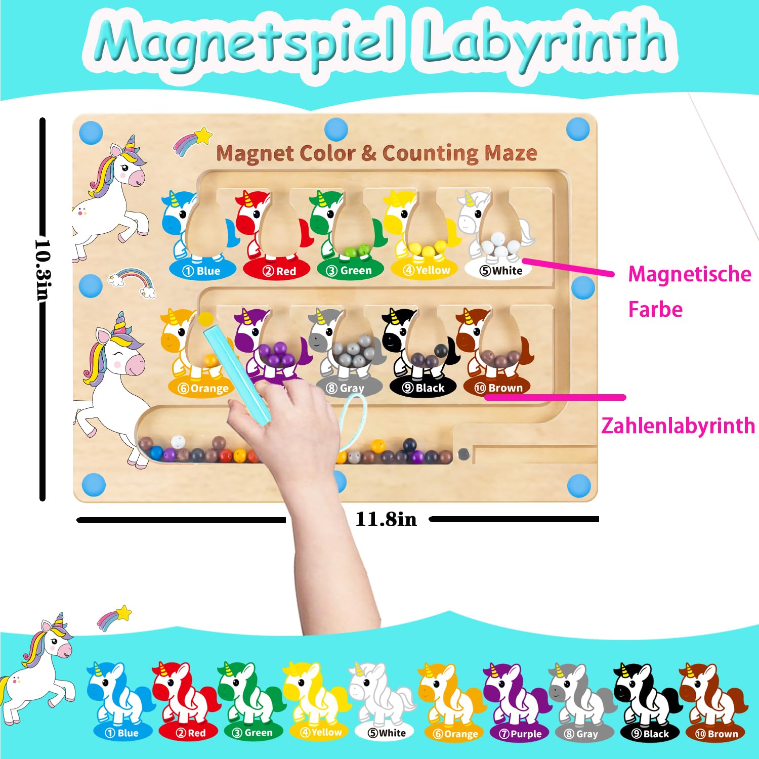 • Montessori Spielzeug ab 2 3 4 5 6 Jahre: JKGIFTS Magnetlabyrinth verfügt über 10 integrierte "Einhorn"sowie 55 Perlen in 10 leuchtenden Farben und einen superstarken Magnetstift. 10 leuchtende Farben werden den entsprechenden Zahlen zugeordnet, sodass Kinder sowohl die Farbzuordnung als auch ihre Rechenfähigkeiten üben können. Geeignet für Spielzeug und Geschenke für Kinder 2–5 Jahre.