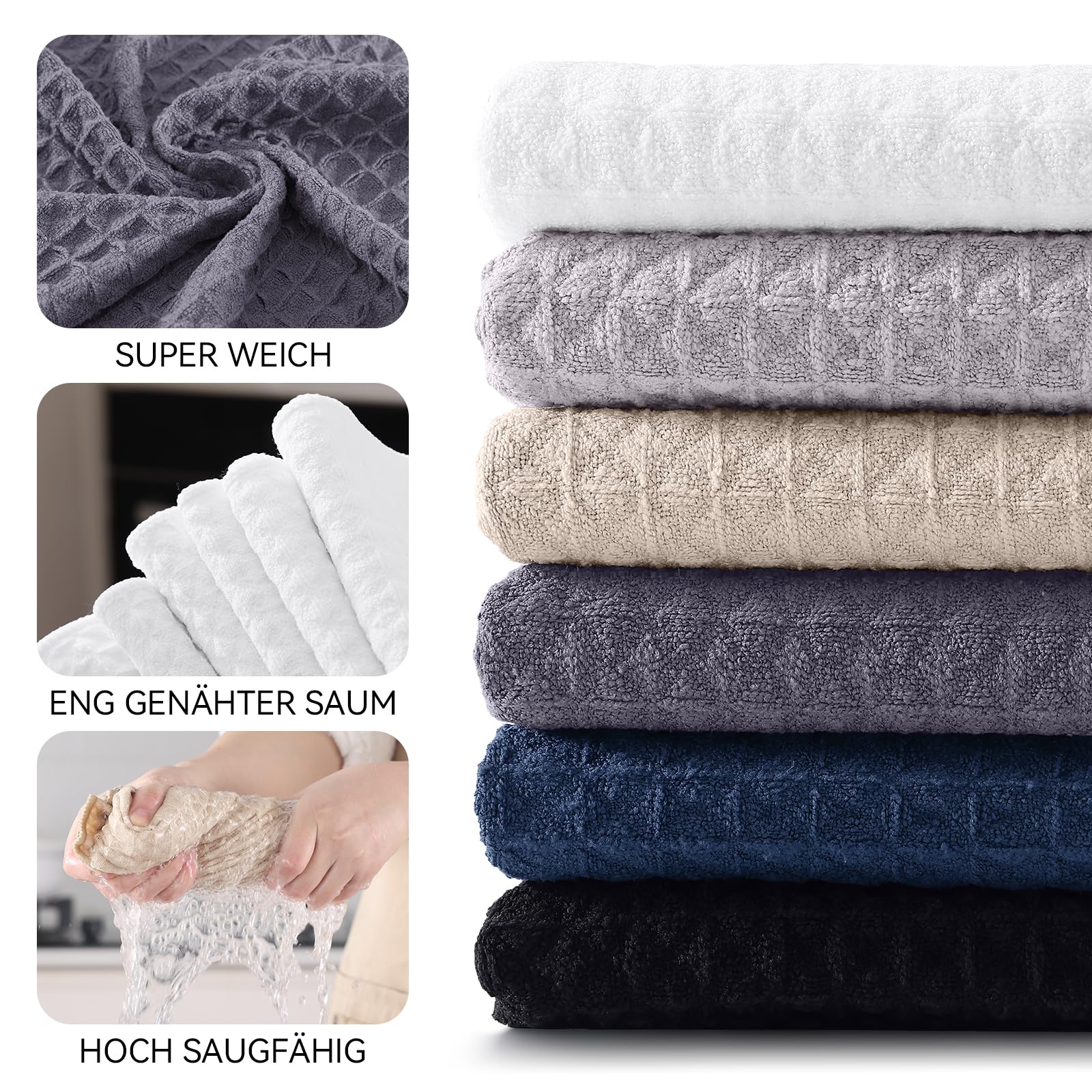- ✔Hohe Qualität: Die Moosfor Geschirrhandtücher sind groß, dick, flauschig und langlebig. Das Waffeldesign macht es stilvoller und funktionaler als ein normaler Küchentücher