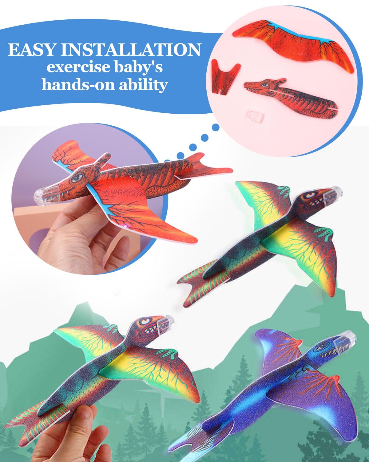 - Bestes Geschenk – Das manuelle Wurfflugzeug ist eine ideale Wahl für Kindertagsgeschenke, Weihnachtsgeschenke, Geburtstagsgeschenke, Reisegeschenke usw. Es kann die praktischen Fähigkeiten, die Beobachtungsfähigkeit und den Orientierungssinn von Kindern verbessern. Halten Sie sie aktiv und bringen Sie ihnen Spaß.