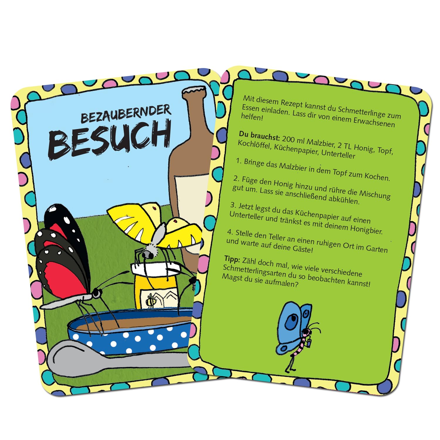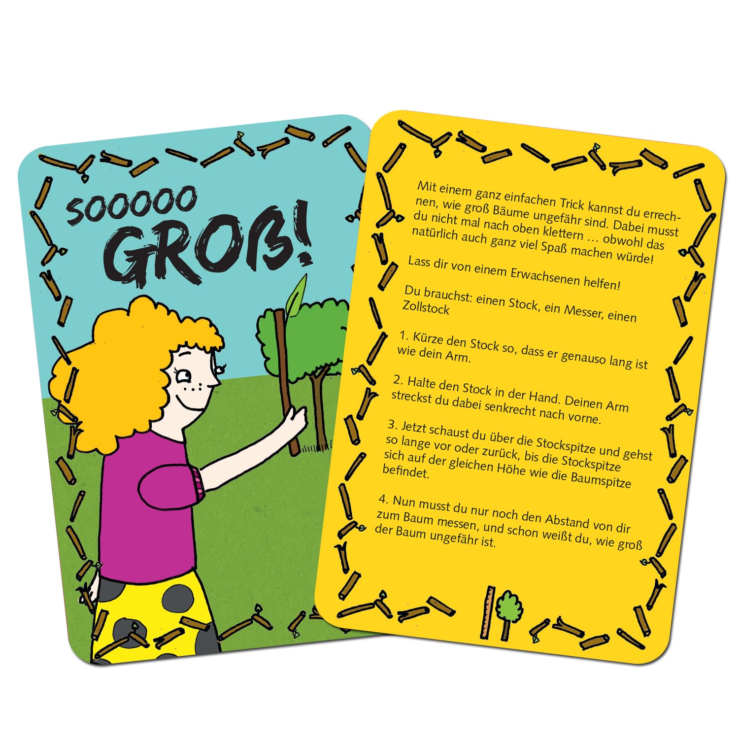 Einzelheiten: Raus in die Natur! Wie trinken eigentlich Blumen? Wie baut man eine eigene Wetterstation oder bestimmt das Alter von Bäumen? Eine Schmetterlings-Kita eröffnen, einen eigenen Regenbogen herstellen oder ein Unterwasserbeobachtungsgerät bauen - Garten, Park und Wald sind voller Geheimnisse. Dieses Kartenset geht einigen von ihnen auf den Grund und lässt jeden zum Naturforscher werden. Ab 8 Jahren, 50 Karten in einer Schachtel, Karten sind FSC-zertifiziert. Maße der Schachtel: 13,3 cm x 9,5 cm x 2,5 cm.