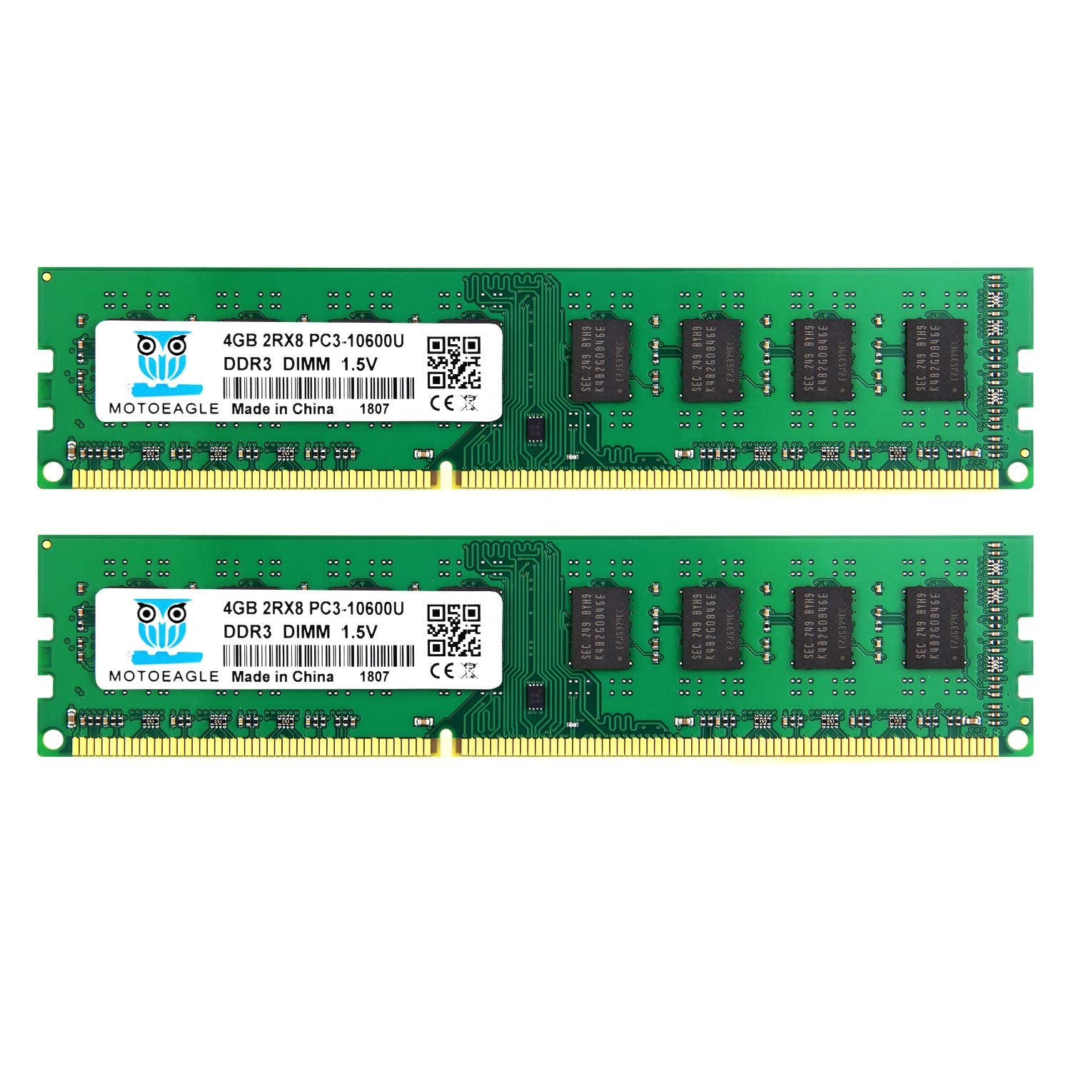 Motoeagle 8GB Kit (2x4GB) PC3 10600U DDR3-1333MHz 10600 PC3 4GB DIMM RAM 2Rx8 Unbuffered Non-ECC 1.5V CL9 240-Pin Desktop Arbeitsspeicher