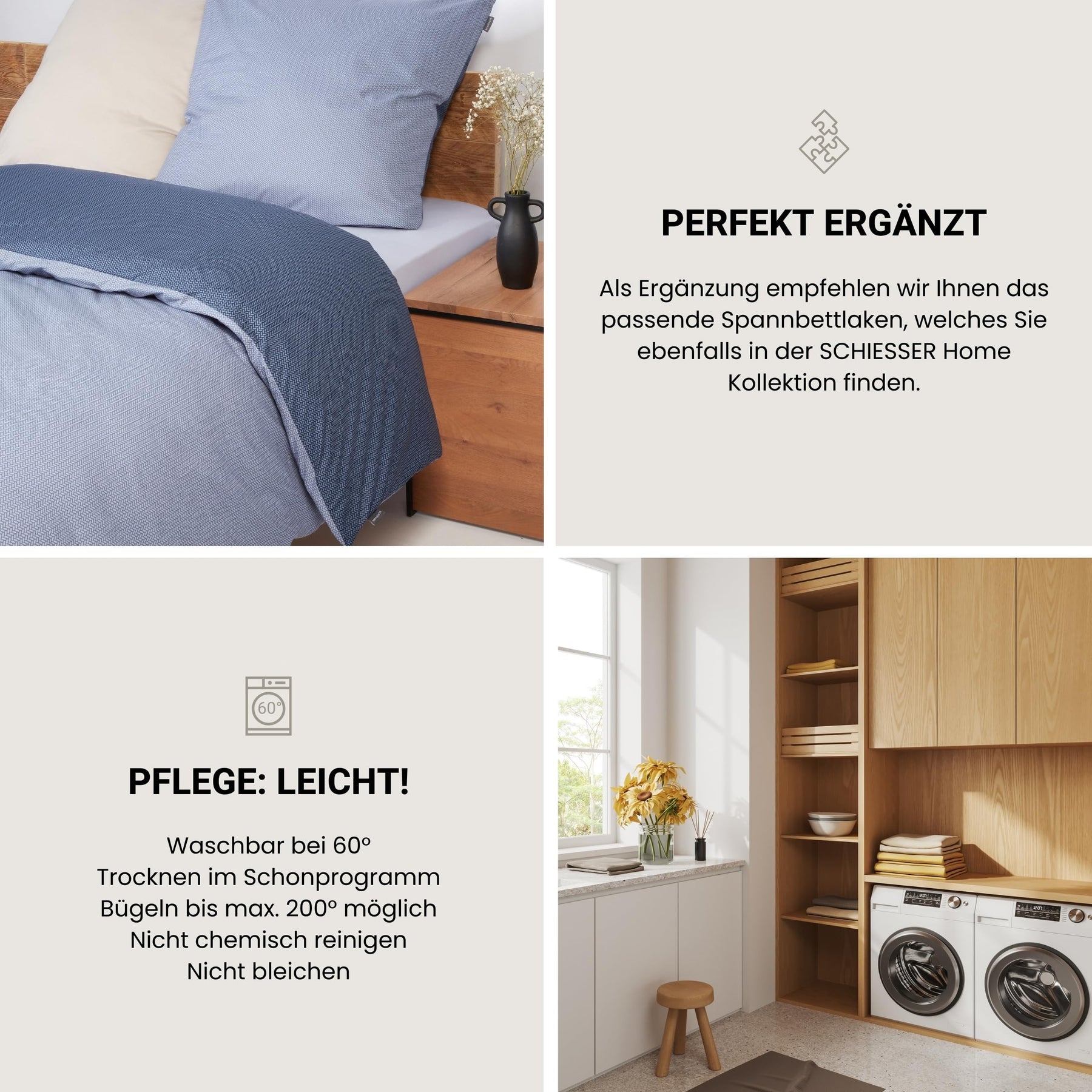Langlebiges, zweiteiliges Bettwäscheset in berühmter SCHIESSER Markenqualität. 100% Baumwolle. Feine Renforcé Qualität. Weich und glatt. Hautsympathisch und pflegeleicht. Farbecht und formstabil. Versteckter Reißverschluss. Schadstofffrei. Nachhaltig und fair produziert.