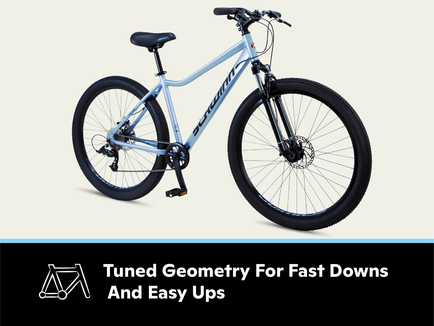 Einzelheiten: Komm weg von der Couch und direkt rein in die Action mti einem Mountainbike, das für alles gewappnet ist. Das Fleet von Schwinn ist das ideale Mountainbike, mit dem du dein nächstes Trail-Abenteuer bestreiten kannst. Dieses schöne Hardtail protzt mit einem Aluminium-Mountain-Stil-Rahmen mit einer Schwinn-Federgabel vorn, die Stöße und Schläge während der Fahrt abfedert. Sind Hügel das Einzige, was zwischen dich und den Trail kommt. Altus-Gangschaltung mit 9 Gängen und ein Shimano-Altus-Schaltwerk sorgen für smoothe Gangschaltung und eine breite Gang-Bandbreite, die dich mit Leichtigkeit die Hügel hochbringen. Vordere und hintere Scheibenbremsen bieten die Möglichkeit des scharfen Abbremsens bei allen Bedingungen, wenn du es brauchst, während Noppen-Reifen für jedes Gelände dir jede Menge Grip für knorrige Trailrouten bieten. Mit leichten und starken Felgen für mehr Langlebigkeit. Worauf wartest du also noch? Mach dir mit dem Fleet-Mountainbike den Berg zu eigen.