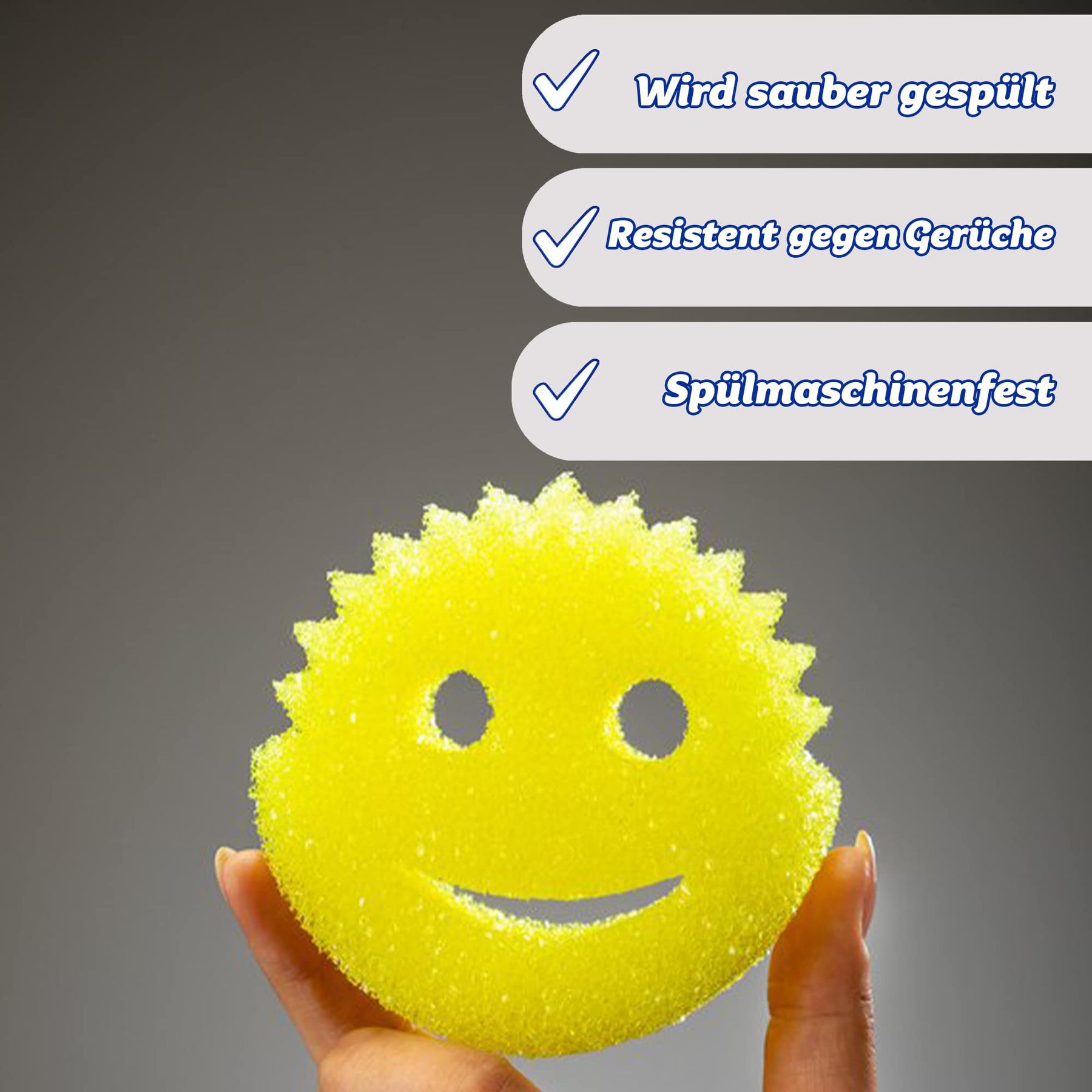Einzelheiten: Scrub Daddy Schwamm - Die originale kratzfreie FlexTexture Spülschwamm-Lösung als Küchenschwamm, Topfschwamm und mehr. Diese Schwämme für die Küche verfügen über ein ergonomisches Design mit innovativen Technologien, um eine überragende Reinigungskraft zu bieten. Diese einzigartigen Spülschwämme ermöglicht vielseitige Reinigung. Scrub Daddy ist ein weicher, leichter Putzschwamm in warmem Wasser und fest gegen hartnäckige Ablagerungen in kaltem Wasser. So kann er ideal als Topfreiniger Schwamm verwendet werden, ohne dass zusätzliche aggressive Chemikalien erforderlich sind. Essensreste spülen Sie einfach unter warmem fließendem Wasser weg. Die Flex Textur trocknet innerhalb einer Stunde, sodass Ihr Scrub Daddy Geschirr-Reinigungsschwamm nicht schimmelt. Unsere Schwämme wurden unabhängig im Labor getestet, sie nehmen bis zu 8 Wochen lang keine Gerüche an. Reinigen Sie beide Seiten von Servierlöffeln und Utensilien in einer Bewegung mit diesem praktischen Küchenschwamm. Die ergonomische Form vom Scrub Daddy Scheuerschwamm ermöglicht es Ihnen, Ihre Finger in seine Augen zu stecken, um einen flexiblen Smiley Schwamm zu haben, sodass Sie an alle schwer erreichbaren Stellen gelangen. Seine runde Form ermöglicht es Ihnen, die Seiten und den Boden von Behältern gleichzeitig zu reinigen, perfekt für die Reinigung von Küche, Bad und Haushalt. Unser Radierschwamm und Schmutzradierer eignet sich für Glas, Antihaft-Beschichtungen, Granit, Keramik, Holz und Edelstahl und kann auch als Geschirrspülschwamm, zum Reinigen von Gegenständen und vielem mehr verwendet werden - ein wahrer Wunderschwamm!