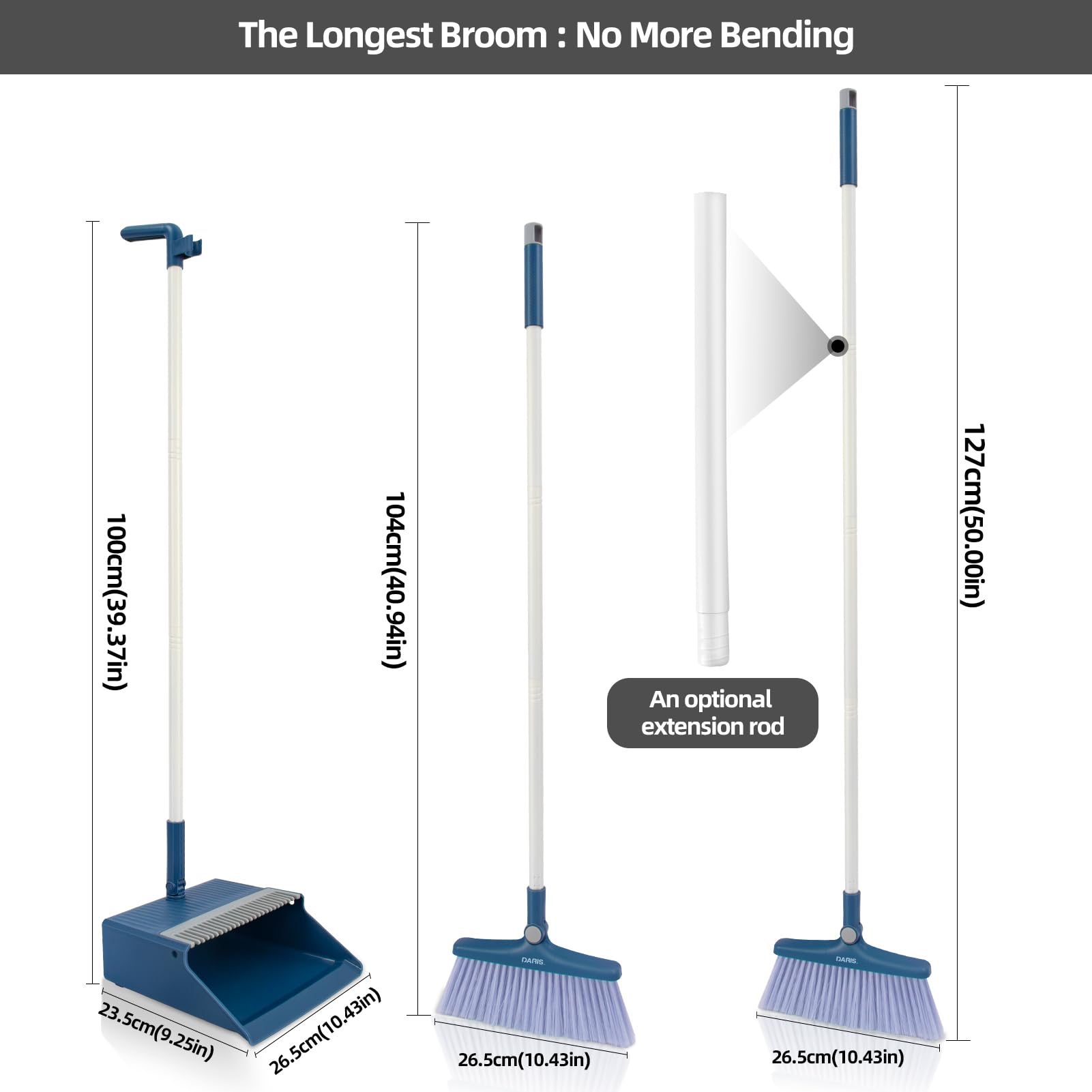 - 127CM Langer Griffe: Kehrgarnitur mit 127CM langem griff und 100CM kehrblech ermöglichen es Ihnen, aufrecht zu stehen, um bequem zu fegen, anstatt sich umzubeugen.