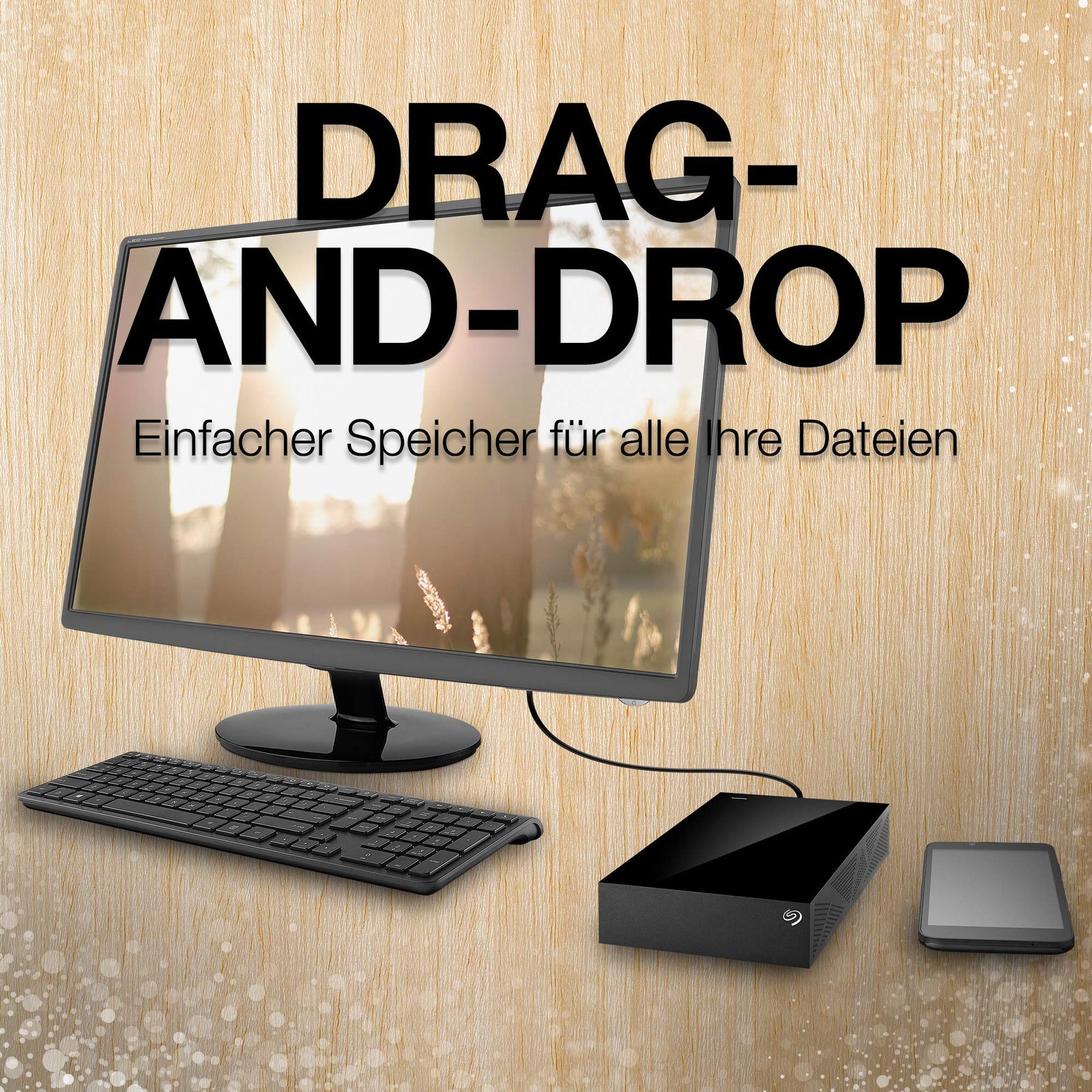Einfach; Praktisch; Kompatibel; Sie müssen Ihre Dateien schützen. Mit dieser benutzerfreundlichen Desktop-Festplatte, die automatisch von Windows erkannt wird, können Sie sie ganz einfach sichern.