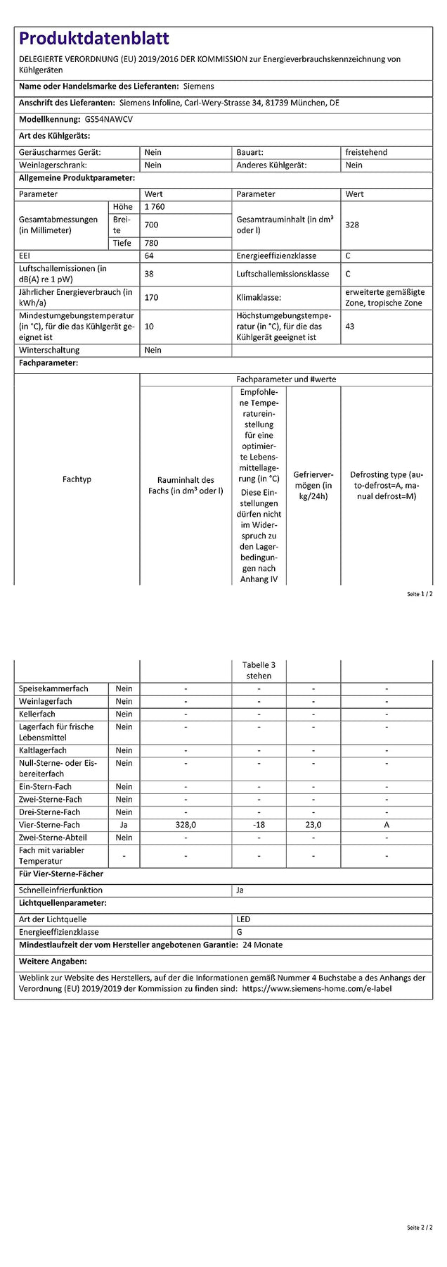 Siemens iQ500 Freistehender Gefrierschrank GS54NAWCV / no Frost Technologie / multiAirflowSystem / 70 cm breit / 176 cm hoch / 78 cm tief / Energie-Effizienzklasse C / iceTwister – Eiswürfelspender / Türen weiß / Seitenwände weiß / Vertikaler Stangengriff / Gesamtfassungsvermögen: 328 Liter / LED Beleuchtung / große Aufbewahrungsbox - bigBox / Elektronische Temperaturregelung / Optische und akustische Warnung bei unzulässigem Temperaturanstieg / Multi-Alarm-System mit Memory-Funktion, Türalarm und Netzausfallanzeige / superFreezing – super Gefrieren mit Eingefrierautomatik / freshSense – konstante Temperatur durch Sensortechnik / varioZone. Hersteller: Siemens Modell: GS54NAWCV Energieeffizienzklasse: C auf einer Energieeffizienzklasse-Skala von A bis G Energieverbrauch: 170 kWh/Jahr Gesamtfassungsvermögen: 328 l Geräuschwert: 38 dB(A) re 1 pW Gefrierteil: noFrost – nie wieder Abtauen / ****-Gefrierraum: 328 l Nutzinhalt / Gefriervermögen: 23 kg in 24 Std. / Lagerzeit bei Störung: 14,5 Std. / 5 transparente Gefriergut-Schubladen, davon 1 bigBox / Multi-Airflow-System / IceTwister herausnehmbar und leicht zu befüllen / VarioZone – für flexible Nutzung des Gefrierraums. Technische Informationen: Türanschlag rechts, wechselbar / Höhenverstellbare Füße vorne, Rollen hinten / Türöffnungswinkel 90° / Anschlusswert: 120 W / 220 - 240 V.