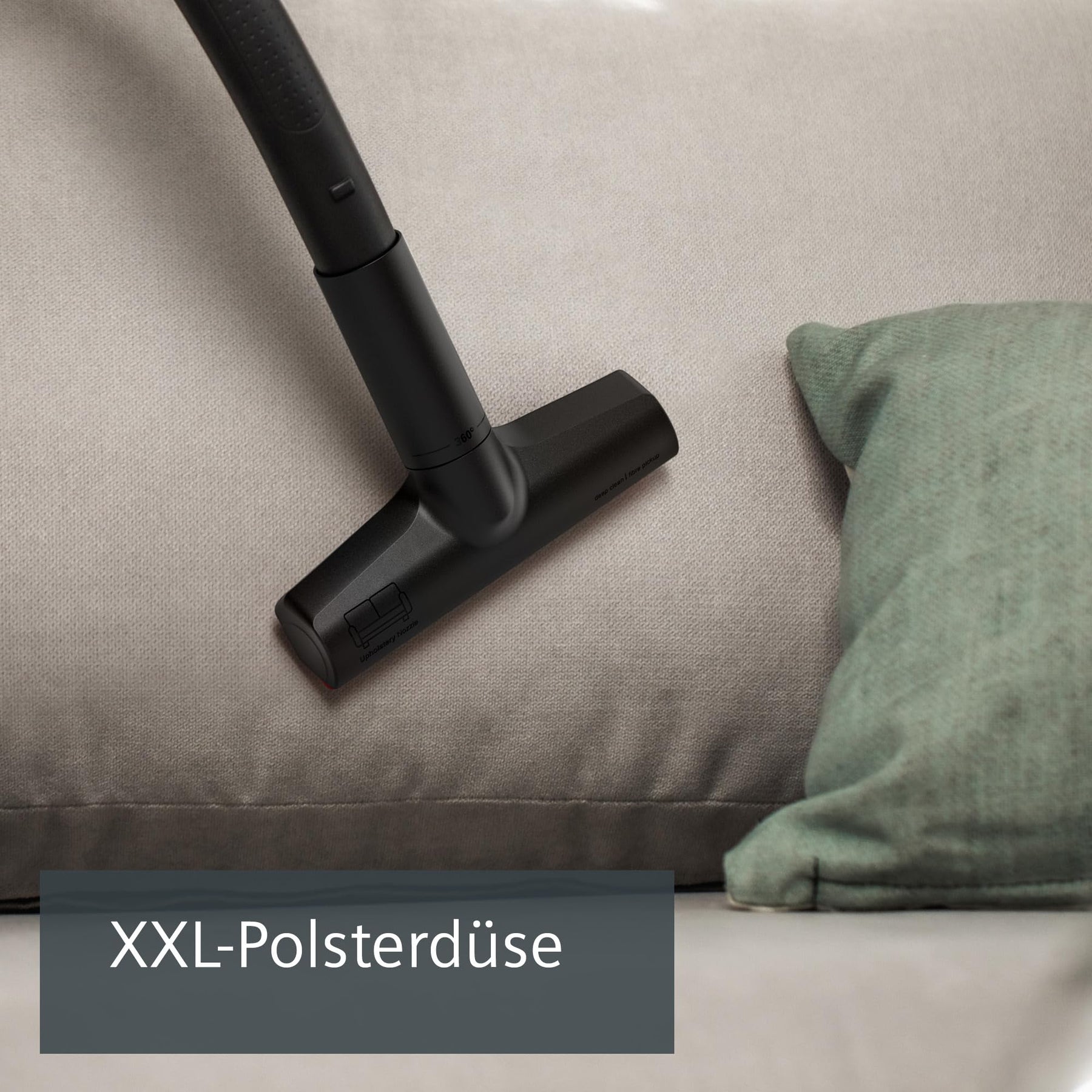 Die extra breite XXL-Polsterdüse macht die Reinigung von Polstermöbeln noch einfacher und entfernt auch Tierhaare.