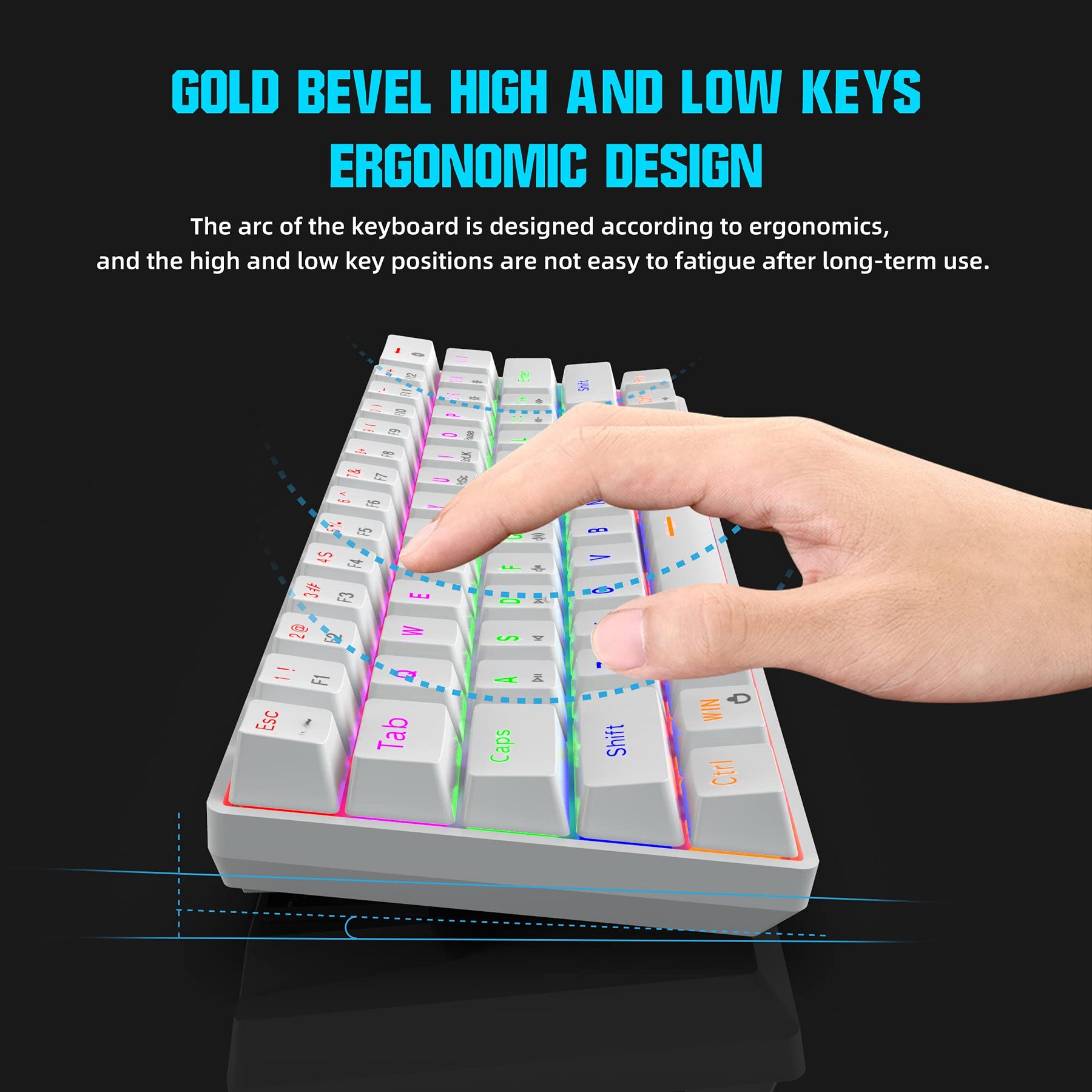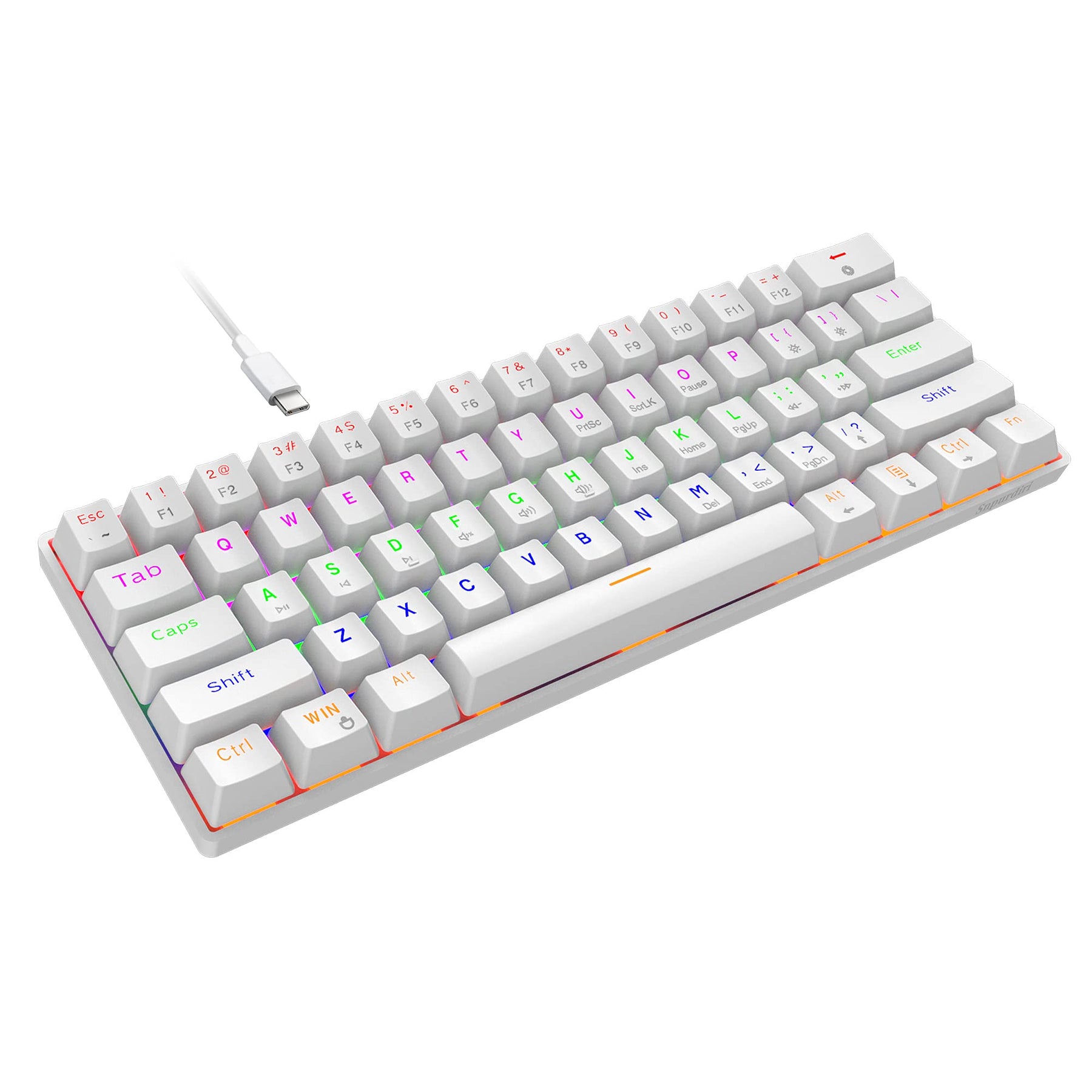 Snpurdiri 60% kabelgebundene Mechanische Gaming Tastatur, Anti-Ghosting 61 Tasten, RGB-Hintergrundbeleuchtung, Ultrakompakter Blauer Schalter, Doppelfuß, Weiß