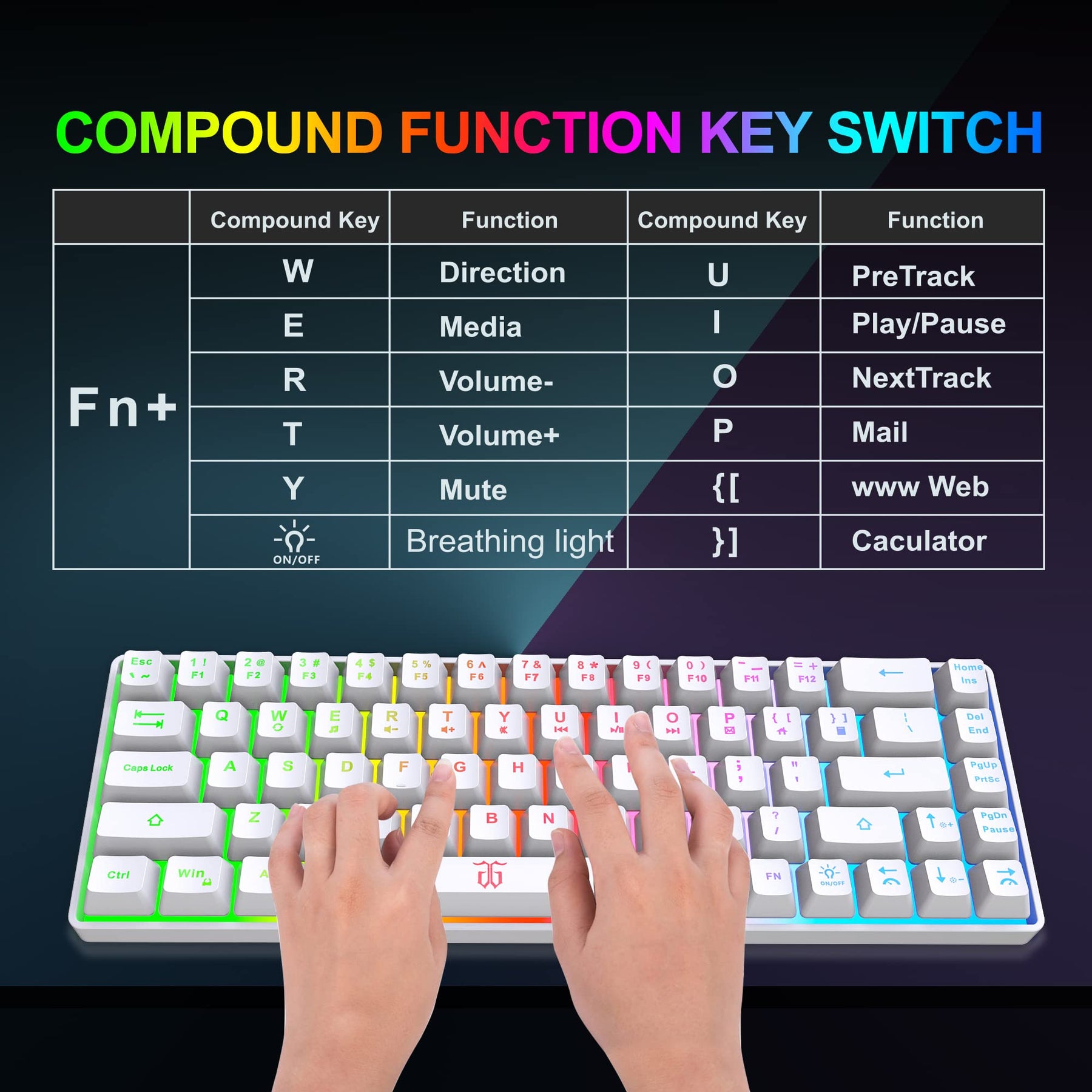 - 【Small Gaming Keyboard and Mouse Combo】Die wissenschaftliche Wahl ist eine kabellose kompakte 60%-Tastatur und eine niedliche Maus im Taschenformat, die sich bemüht, eine perfekte Kombination aus Gaming und Büro zu schaffen. Schlankes und leichtes Design macht es nicht viel Platz einnehmen und bieten Komfort für Reisen.