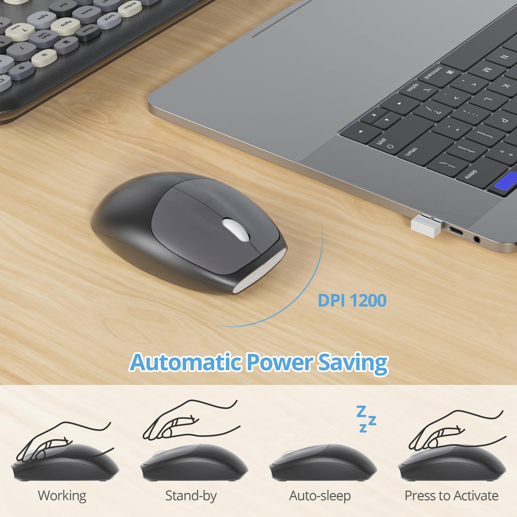 • ✿【Automatische Energiesparfunktion】Die Schreibmaschine Tastatur wird mit 1 AAA-Batterie betrieben, und die kabellose Maus wird mit 1 AA-Batterie (im Lieferumfang enthalten) betrieben. Wenn Sie die retro Schreibmaschine Tastatur und kabellose Maus länger als 5 Minuten nicht benutzen, wechselt die Drahtlose Tastatur mit Maus in den Ruhemodus. Drücken Sie eine beliebige Taste, um das Gerät zu aktivieren.