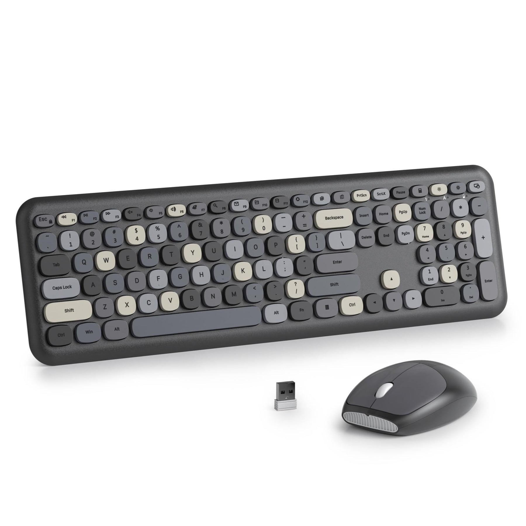 SOLIDEE Buntes kabellose Tastatur und Maus-Kombination,2.4GHz Retro Schreibmaschine Tastatur,104 Tasten in voller mit Ziffernblock,Leise membran Tastatur(Amerikanisch QWERTY)(Black Grey)